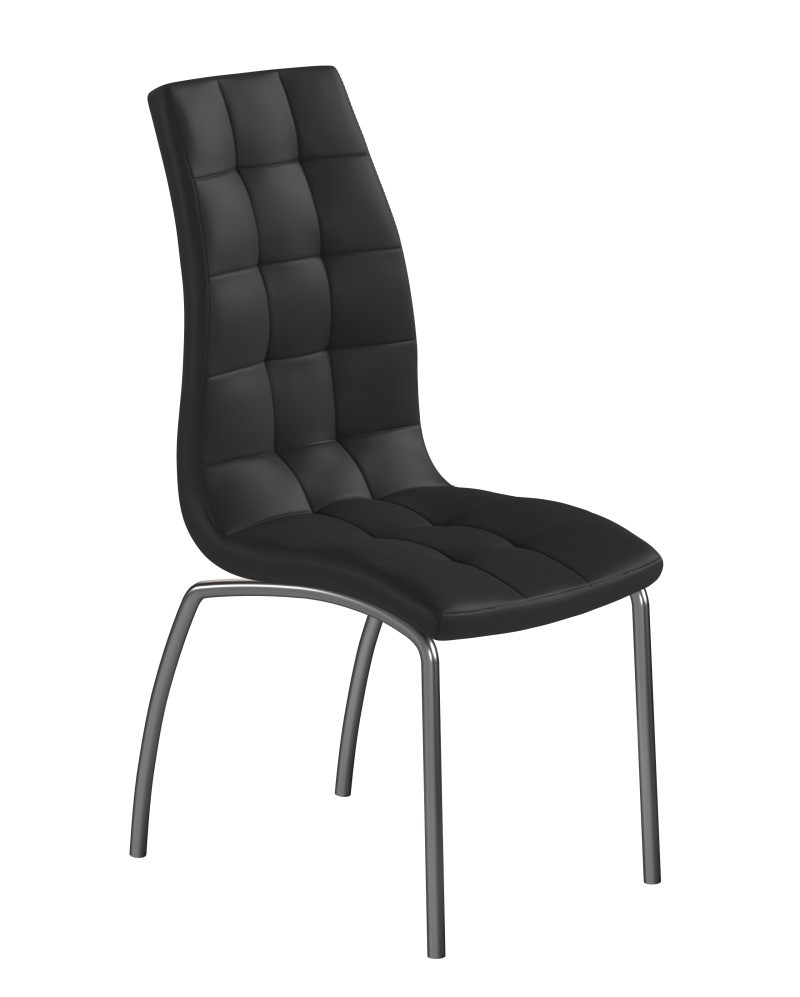 To krzesło wyróżnia się nowoczesnym i eleganckim designem, idealnym do współczesnych wnętrz. Tapicerka wykonana z ekoskóry nadaje mu stylowego wyglądu, a jednocześnie zapewnia trwałość i łatwość w pielęgnacji. Oparcie i siedzisko mają charakterystyczne, pikowane wykończenie, co podkreśla nowoczesny styl i dodaje meblowi luksusowego wyglądu. Smukłe, lekko wygięte nogi wykonane z metalu nadają konstrukcji stabilności, a ich metaliczny połysk dodaje elegancji. Krzesło świetnie sprawdzi się zarówno w jadalni, jak i salonie, podkreślając styl i komfort pomieszczenia.