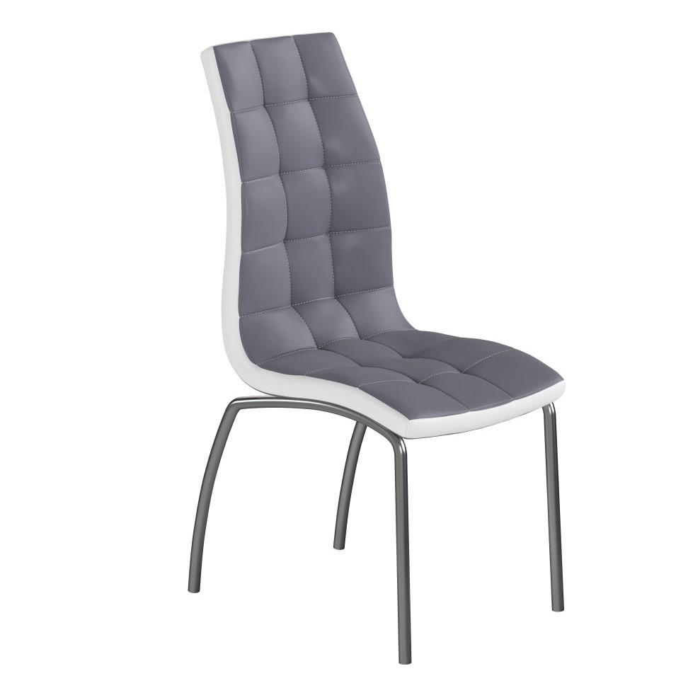 To krzesło wyróżnia się nowoczesnym i eleganckim designem, idealnym do współczesnych wnętrz. Tapicerka wykonana z ekoskóry nadaje mu stylowego wyglądu, a jednocześnie zapewnia trwałość i łatwość w pielęgnacji. Oparcie i siedzisko mają charakterystyczne, pikowane wykończenie, co podkreśla nowoczesny styl i dodaje meblowi luksusowego wyglądu. Smukłe, lekko wygięte nogi wykonane z metalu nadają konstrukcji stabilności, a ich metaliczny połysk dodaje elegancji. Krzesło świetnie sprawdzi się zarówno w jadalni, jak i salonie, podkreślając styl i komfort pomieszczenia.