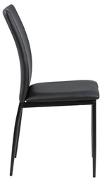Krzesło Demina w kolorze czarnym wykonane z PU (poliuretanu) to elegancki i funkcjonalny mebel, który może stanowić doskonały dodatek do nowoczesnych wnętrz. Poliuretan jest materiałem, który często imituje skórę, ale jest bardziej odporny na zużycie i łatwiejszy do utrzymania w czystości. Proste, minimalistyczne linie, które pasują do różnych stylów wnętrz.Siedzisko i oparcie wykonane z wysokiej jakości poliuretanu (PU), który jest trwały i łatwy do czyszczenia.Takie krzesła są idealne do wnętrz urządzonych w nowoczesnym stylu, zarówno w domach, jak i w biurach.