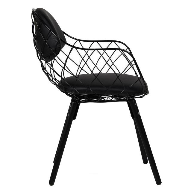 Krzesło Demon to połączenie metalu, czarnej ekoskóry i drewna bukowego lakierowanego na czarno. Krzesło w całości jest w kolorze czarnym. Całość tworzy wygodny mebel w industrialnym stylu. Waga netto 1 szt.: 6 kg Waga opakowania: 7 kg Maksymalna ilość szt. w opakowaniu: 2 Sposób wysyłki: Paczka Wymiary paczki: 59cm x 57cm x 71cm Produkt do samodzielnego montażu: Tak