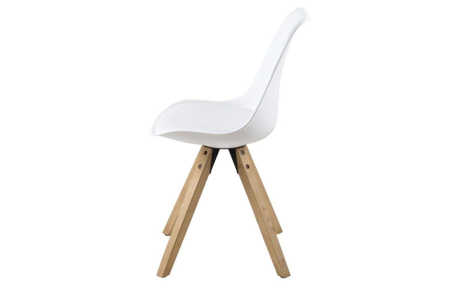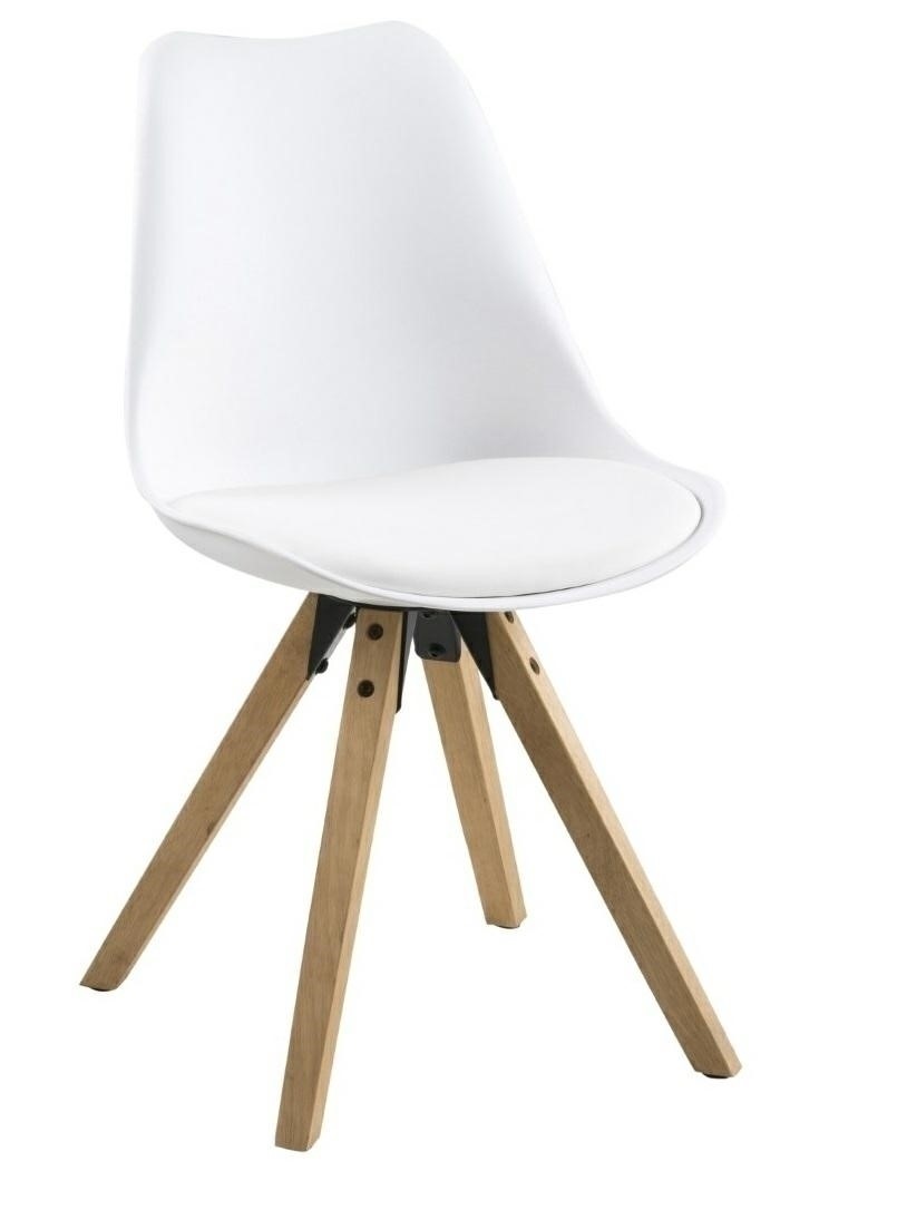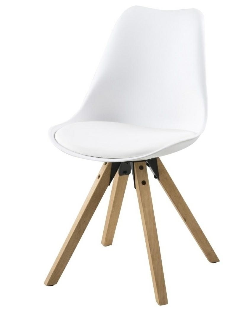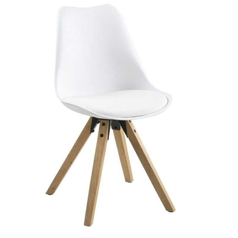 Krzesło Dima to doskonały wybór dla miłośników minimalistycznego designu. Białe siedzisko połączone z drewnianymi nogami w kolorze dębu tworzy harmonijną kompozycję, idealną do nowoczesnych i skandynawskich wnętrz. Konstrukcja zapewnia stabilność i komfort, a jednocześnie jest lekka i łatwa do przenoszenia. To świetna opcja do jadalni, kuchni czy biura, gdzie prostota idzie w parze z elegancją.