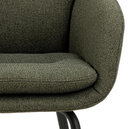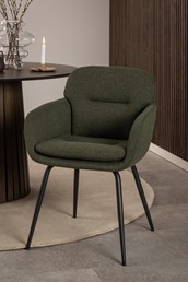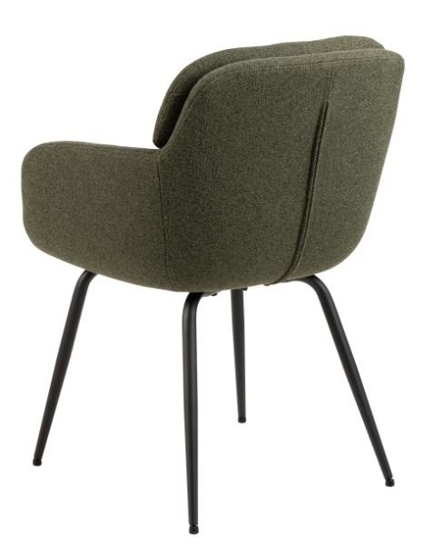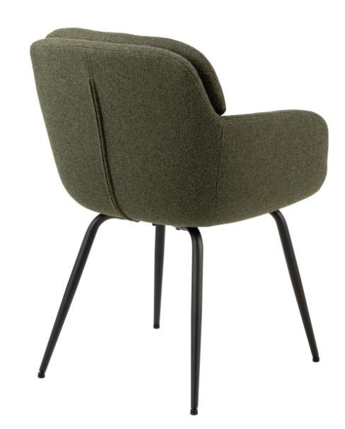 Krzesło Dora łączy nowoczesny design z wygodą, będąc doskonałym wyborem do jadalni, salonu lub kuchni. Dwuwarstwowe oparcie z zamkiem błyskawicznym na zewnętrznej stronie dodaje mu charakteru, a tapicerka z materiałów z recyklingu podkreśla ekologiczną stronę mebla. Stabilność zapewniają czarne nogi wykonane z malowanej proszkowo stali. Idealne dla osób szukających elegancji i komfortu.