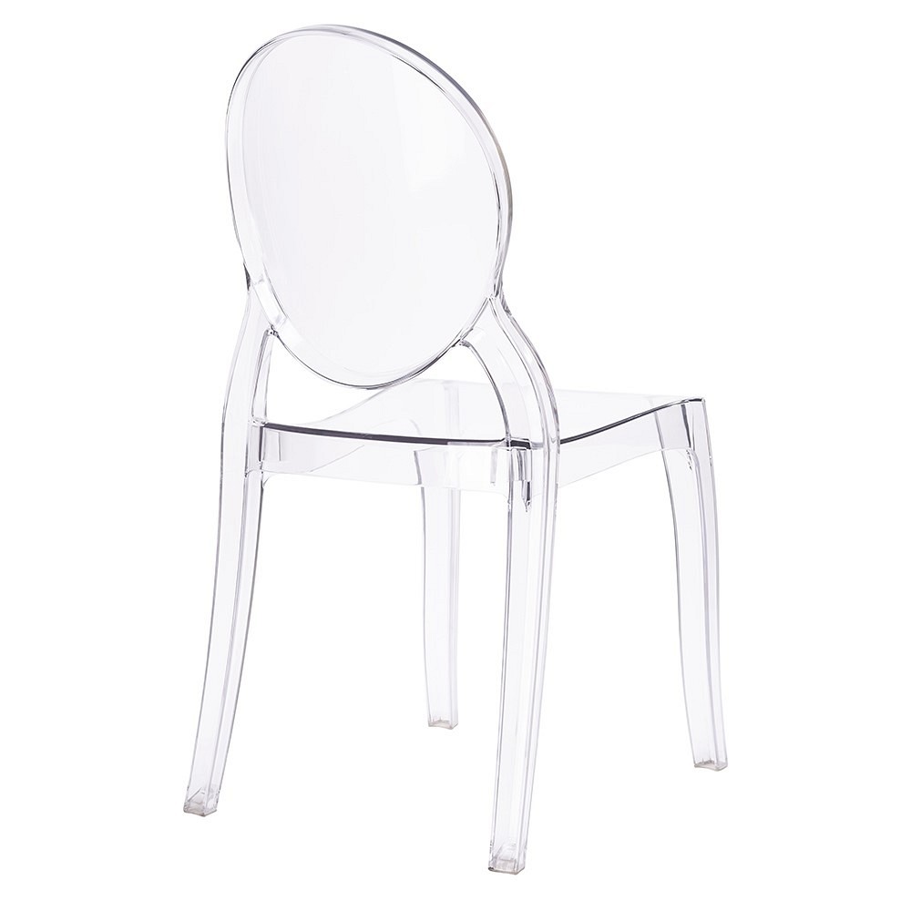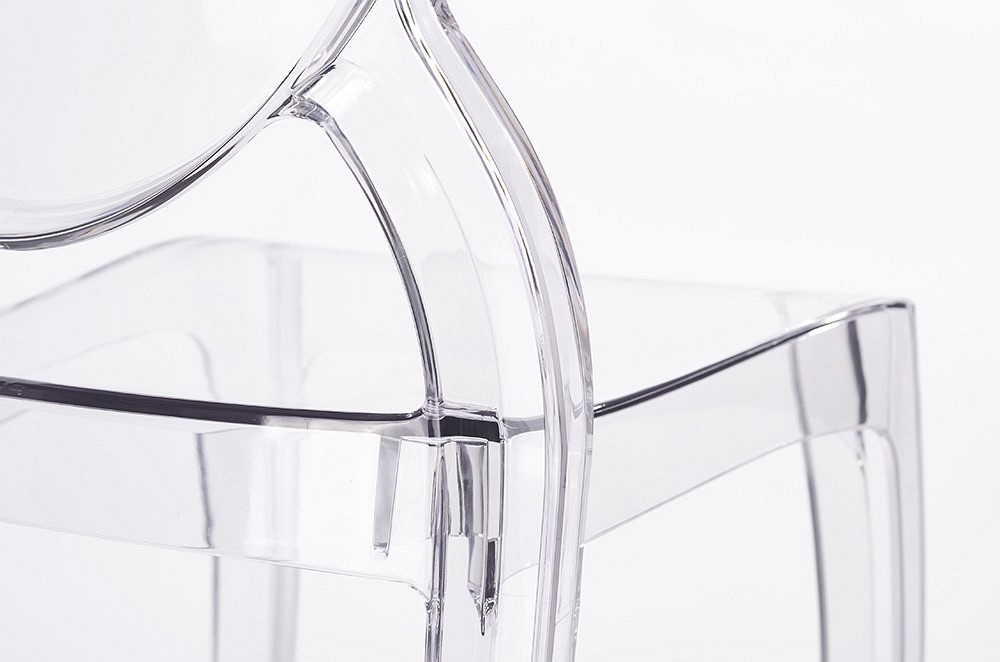 Krzesło Elizabeth w całości zostało wykonane z wysokiej jakości transparentnego poliwęglanu. Poliwęglan jest wysoce odpornym na zarysowania oraz promienie UV tworzywem sztucznym. Dzięki czemu, krzesło można użytkować wewnątrz jak i na zewnątrz budynku. Krzesło można sztaplować, ułatwia to przechowywanie. Waga netto 1 szt.: 4 kg Waga opakowania: 5 kg Maksymalne obciążenie: 120 kg Maksymalna ilość szt. w opakowaniu: 4 Wymiary opakowania: 47 cm x 69 cm x 110 cm Sposób wysyłki: Paczka Produkt złożony: Tak