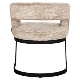 Krzesło Ellis to kwintesencja komfortu i stylu. Beżowa pluszowa tkanina szenilowa w 100% z poliestru wprowadza do wnętrza ciepło i przytulność, zapewniając wyjątkową miękkość i wygodę. Elegancka czarna metalowa podstawa w kształcie litery U dodaje nowoczesnego i luksusowego charakteru. To doskonały wybór do każdego salonu lub biura, gdzie funkcjonalność łączy się z wyrafinowaną estetyką. Krzesło Ellis to idealne rozwiązanie dla osób, które cenią wygodę i elegancki design.