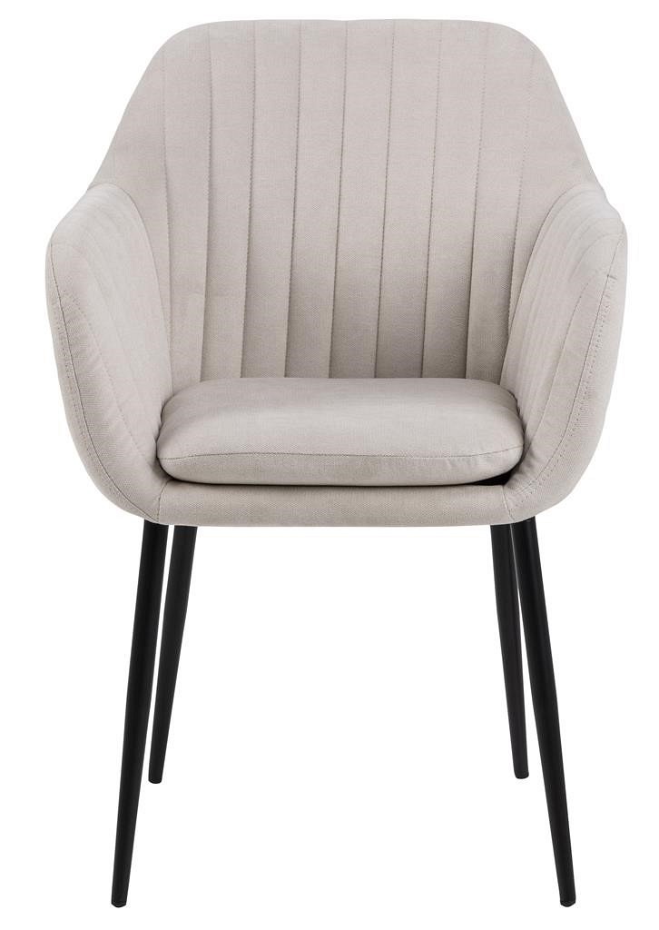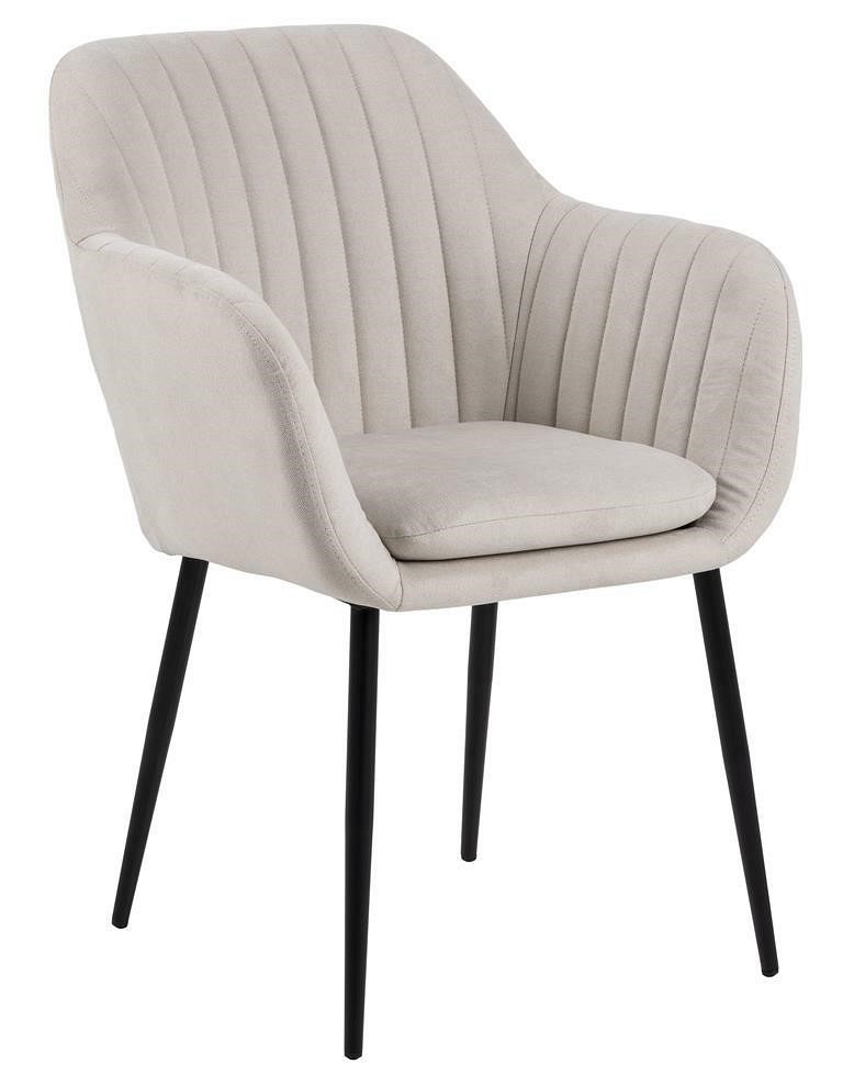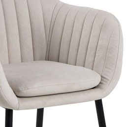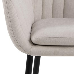 Krzesło Emilia to niezwykle efektowny mebel nawiązujący do stylu skandynawskiego. Siedzisko obite tkaniną Enjoy sand 1 z efektownymi pionowymi pikowaniami na oparciu. Podstawa wykonana jest z dębu olejowanego, który prezentuje się idealnie.