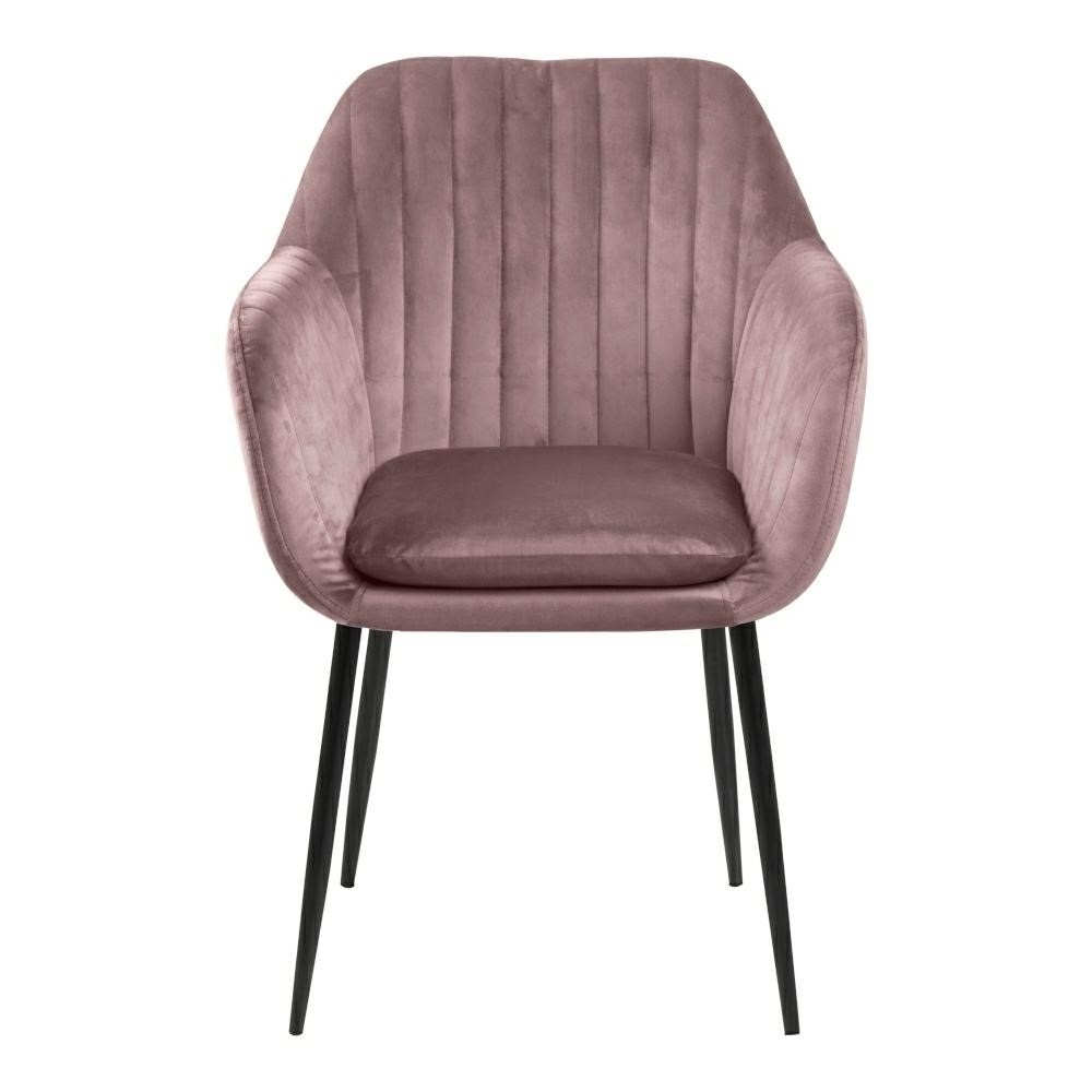 Krzesło Emilia Velvet dusty rose/black to eleganckie krzesło tapicerowane wykonane z miękkiego materiału welurowego w kolorze dusty rose. Kontrastujące czarne metalowe nogi dodają mu nowoczesnego wyglądu. Doskonale sprawdzi się w salonie, jadalni czy sypialni, dodając wnętrzu stylu i elegancji. Jego wygodne siedzisko zapewnia komfort podczas długich spotkań przy stole. Krzesło Emilia Velvet dusty rose/black to doskonały wybór dla osób ceniących sobie wygodę i estetykę. Z pewnością będzie ono nie tylko praktycznym, ale również dekoracyjnym elementem każdego pomieszczenia.