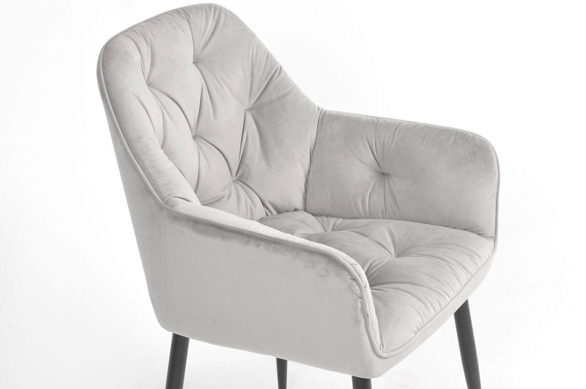 Eleganckie krzesło welurowe EMMA w szarym odcieniu, zaprojektowane w stylu glamour. Nowoczesny design fotela umożliwia łatwe wkomponowanie go w różne przestrzenie, takie jak salon, jadalnia, a nawet sypialnia. Delikatne detale nadają Twojej przestrzeni niepowtarzalny i wyjątkowy charakter. Krzesła EMMA doskonale pasują do różnorodnych typów stołów, od prowansalskich, przez loftowe, aż po nowoczesne. Solidna budowa krzesła zapewnia ich trwałość i niezawodność przez lata użytkowania.