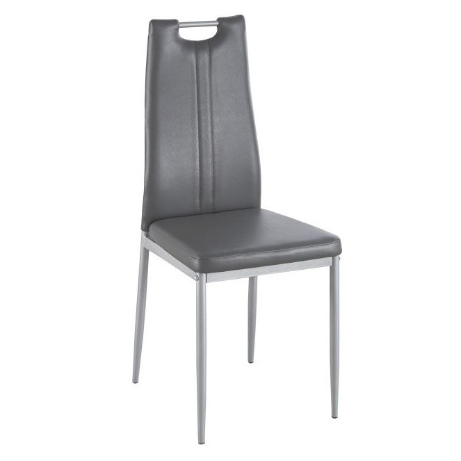 Eleganckie krzesło tapicerowane ekoskórą, które wprowadza nowoczesny akcent do każdego wnętrza. Jego powierzchnia jest łatwa w czyszczeniu i odporna na codzienne użytkowanie, co sprawia, że jest idealnym wyborem do jadalni, biura czy salonu. Smukła forma i dopracowane detale nadają mu stylowy wygląd, a ergonomicznie wyprofilowane oparcie zapewnia komfort siedzenia. Solidna konstrukcja łączy funkcjonalność z estetyką, tworząc mebel, który doskonale wpasuje się w różne aranżacje wnętrz.