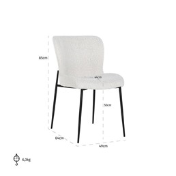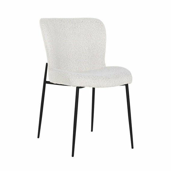 - Dzięki smukłej sylwetce, czarnej metalowej podstawie i zgrabnemu siedzisku w eleganckim białym odcieniu w tkaninie bouclé.