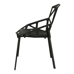 Krzesło Gap PP to oryginalny design oraz atrakcyjny wygląd. Cechy te nadają produktowi miano ponadczasowego. Nogi krzesła Gap wykonane są z metalu lakierowanego proszkowo na czarno, zaś siedzisko zostało zrobione z czarnego polipropylenu. Ze względu na zastosowane materiały produkt idealnie sprawdza się także na zewnątrz. Krzesła można sztaplować. Prezentowany produkt jest inspirowany projektem One Chair. Max. obciążenie: 120kg