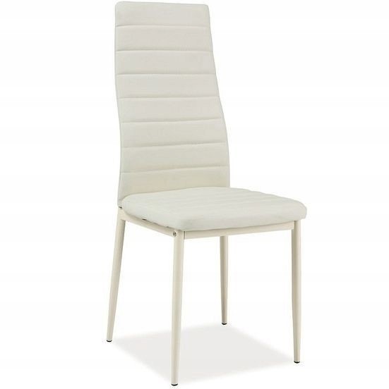 H-261 cechuje się uniwersalnym designem przez co ten klasyczny mebel odnajdzie się w każdym pomieszczeniu od salonu, poprzez biuro aż do kuchni. Krzesło wykonane jest z metalu w kolorze kremowym, a siedzisko tapicerowane jest ekoskórą. Gustownie wyprofilowane oparcie posiada poprzeczne przeszycia.