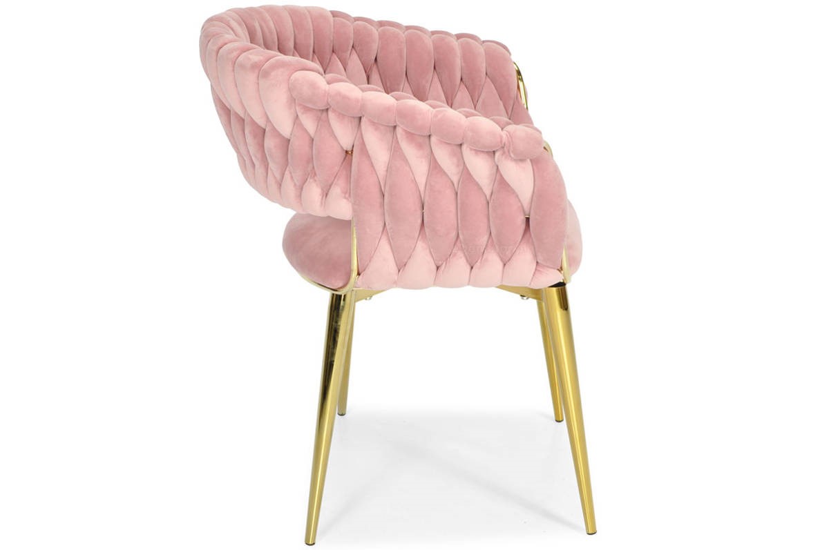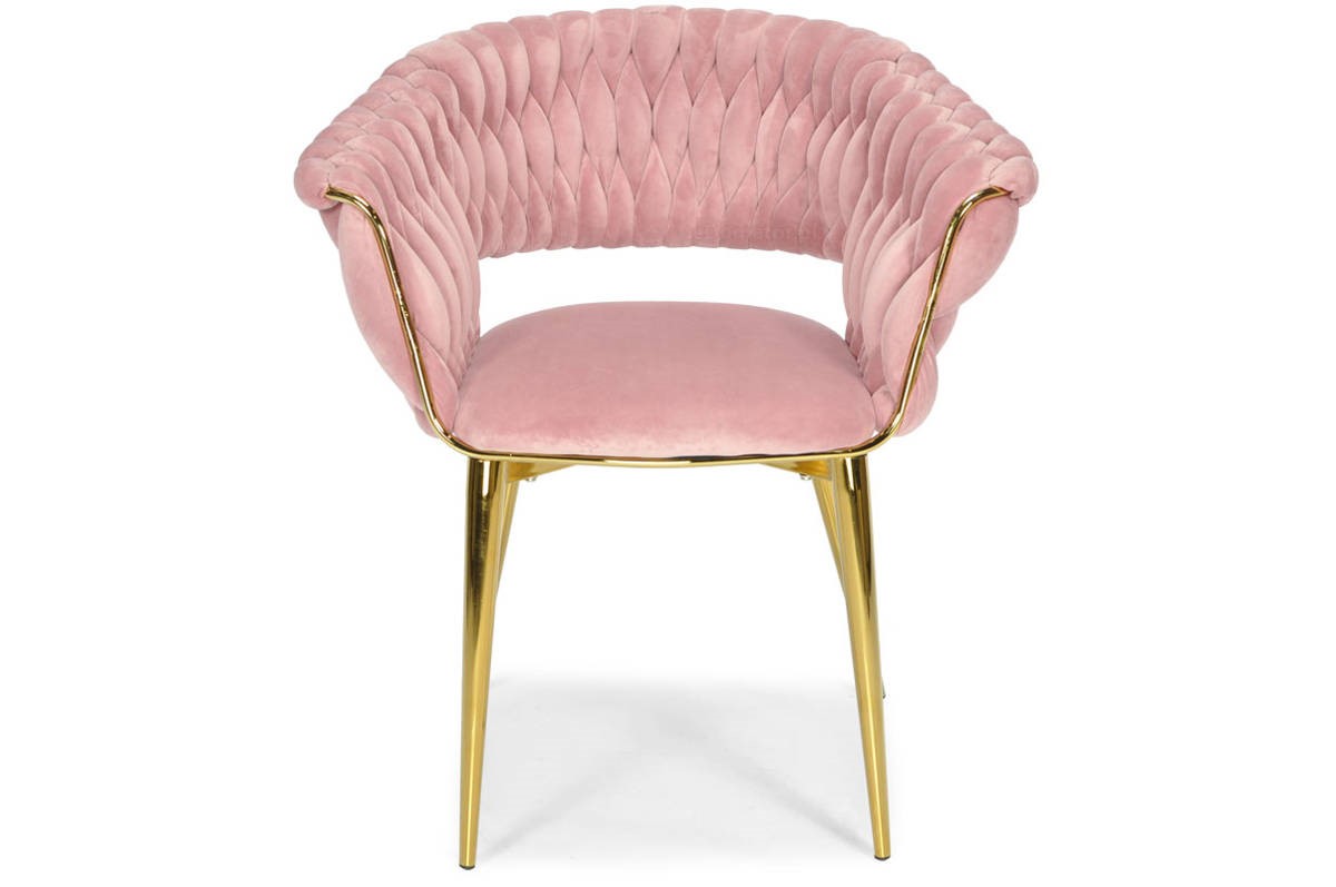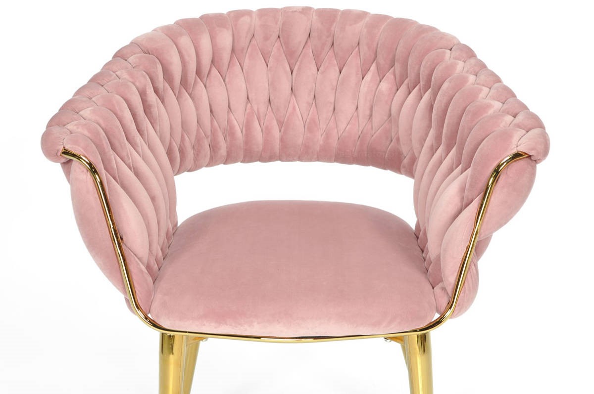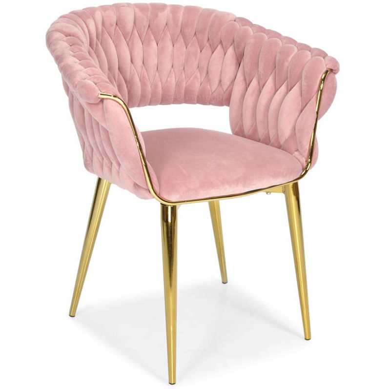 Krzesło "Iris Lux Welur" idealnie nadaje się do nowoczesnych salonów, eleganckich jadalni, czy jako stylowy element dekoracyjny w luksusowych przestrzeniach biurowych. Różowa tapicerka z weluru doskonale harmonizuje z złotym stelażem, tworząc wyrafinowaną i ciepłą estetykę. To krzesło jest wyborem dla tych, którzy cenią sobie połączenie wygody, funkcjonalności i niebanalnego designu.