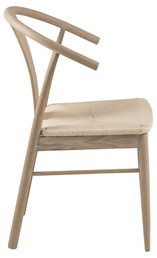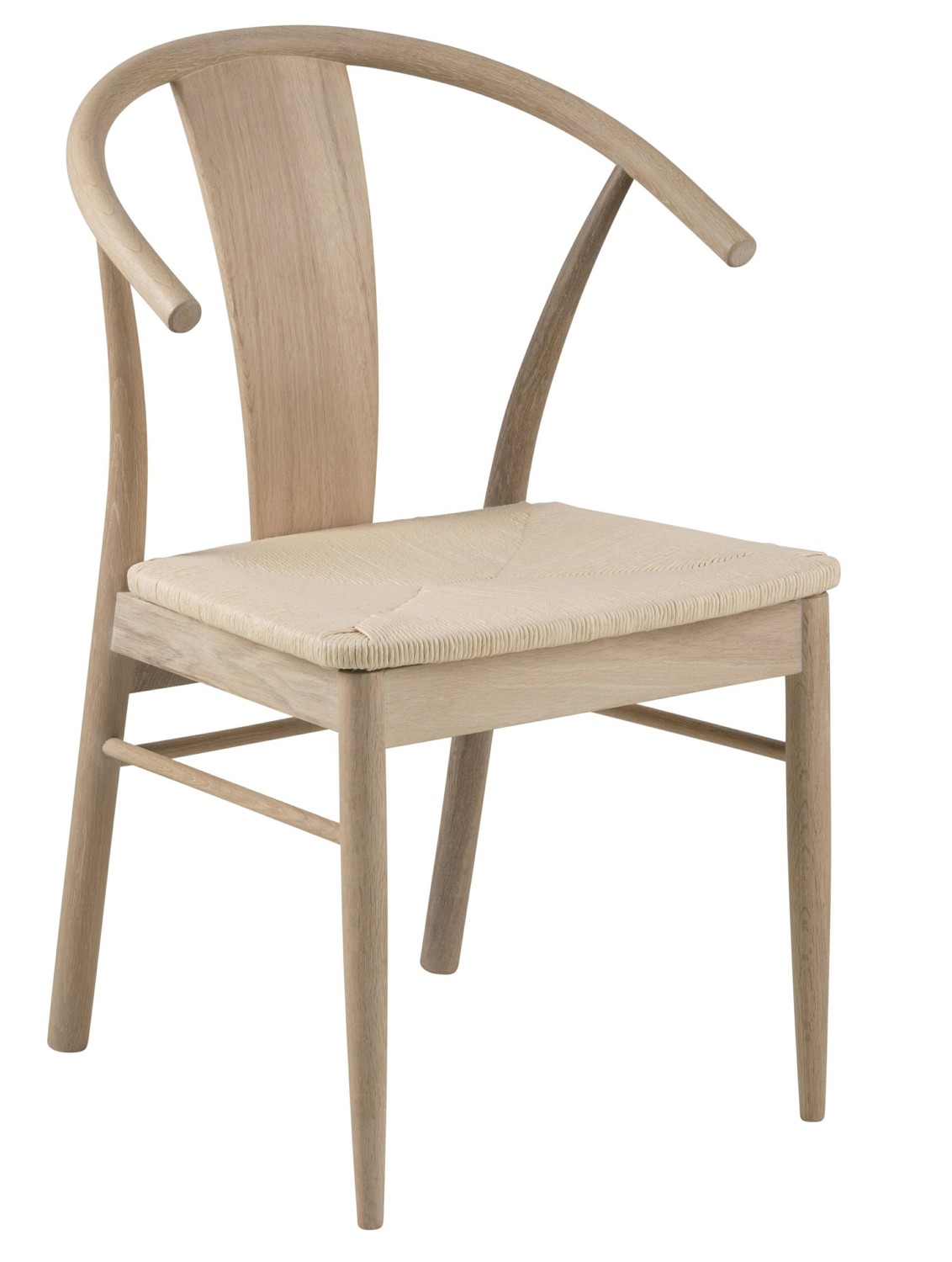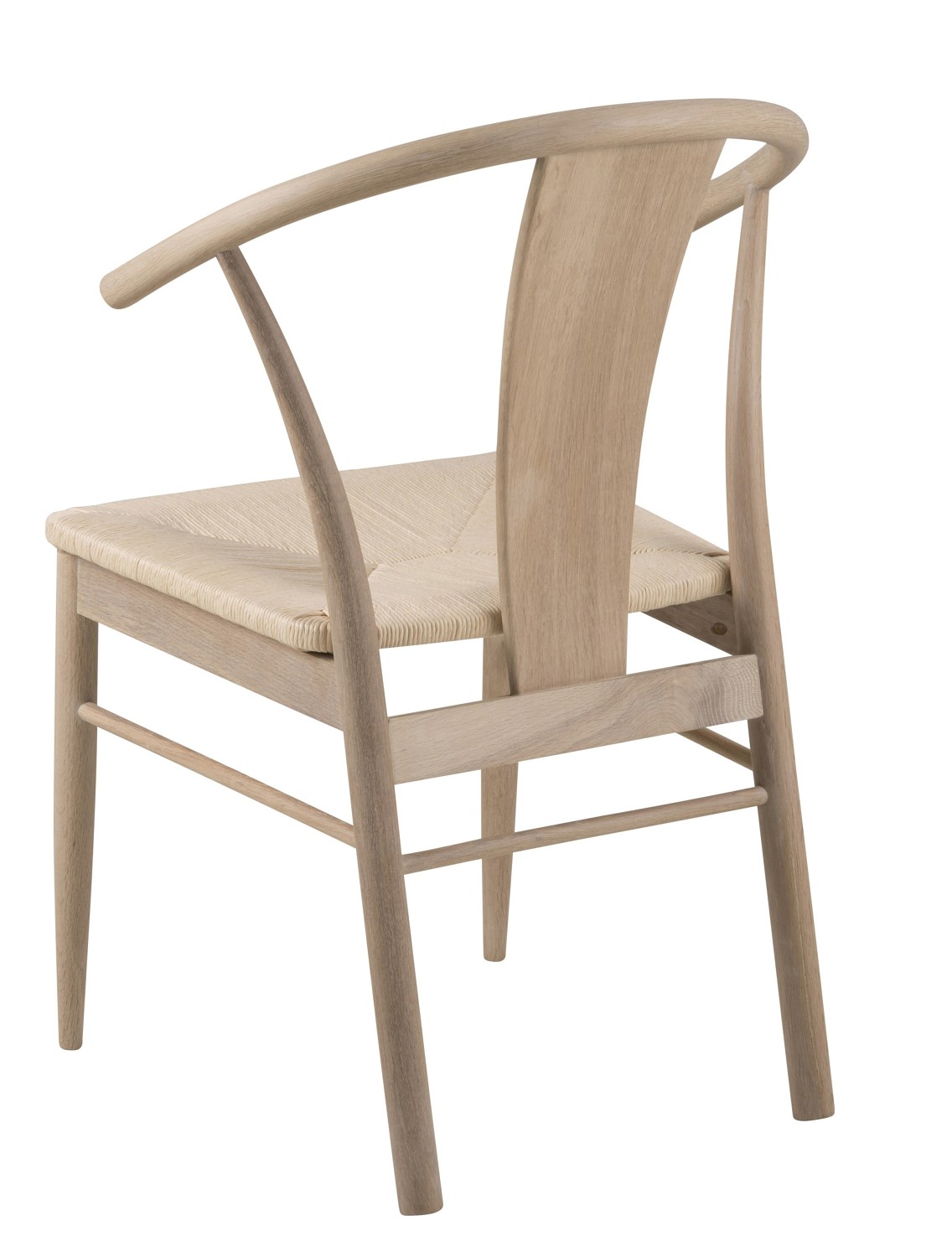 Krzesło Janik wykonane jest z naturalnego, barwionego dębu. Siedzisko z plecionki. Krzesło posiada również wygodne podłokietniki, które są połączone w jedną część z oparciem. Krzesło spoczywa na czterech nogach lekko zwężających się ku dołowi. Krzesło idealnie pasuje do wnętrz w stylu skandynawskim.