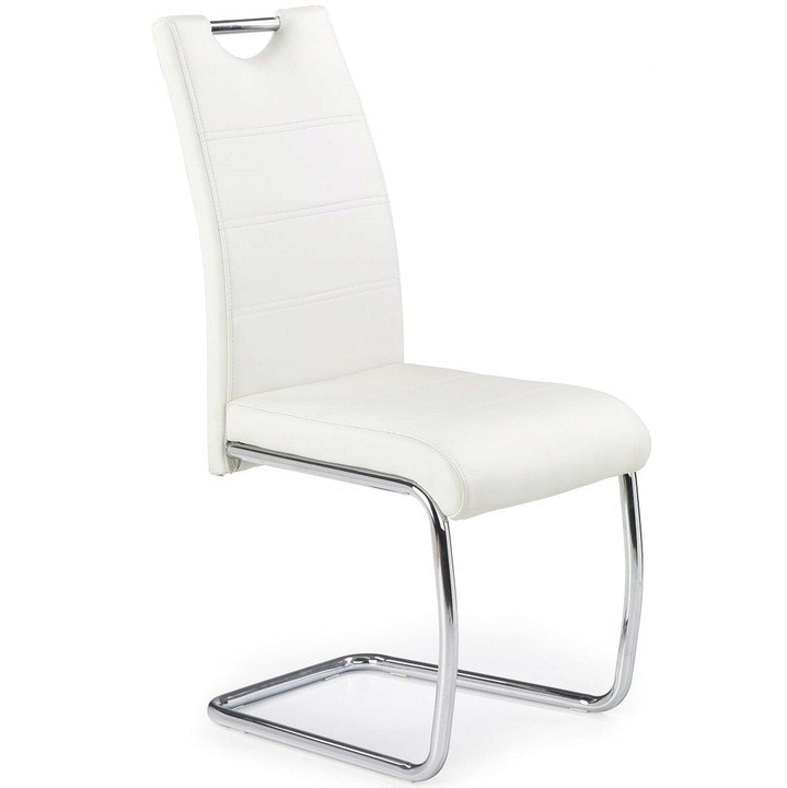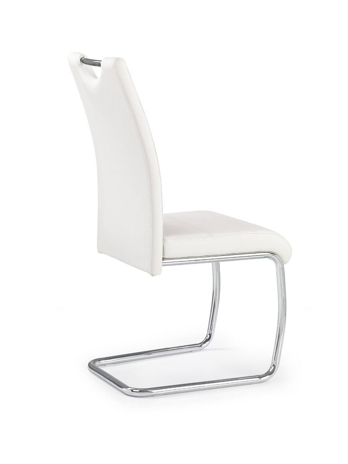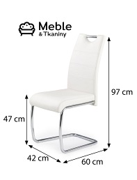 K211 to typowe krzesło salonowe. Stelaż wykonano ze stalowej rury w chromowanym wykończeniu. Delikatnie wyprofilowane siedzisko i oparcie obszyto ekoskórą i dodano gustowne przeszycia.