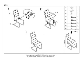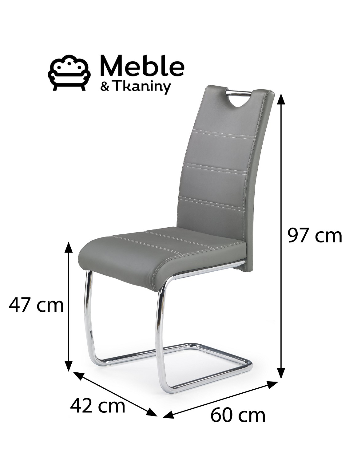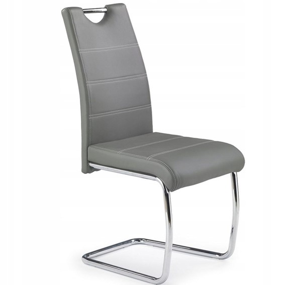 K211 to typowe krzesło salonowe. Stelaż wykonano ze stalowej rury w chromowanym wykończeniu. Delikatnie wyprofilowane siedzisko i oparcie obszyto ekoskórą i dodano gustowne przeszycia.