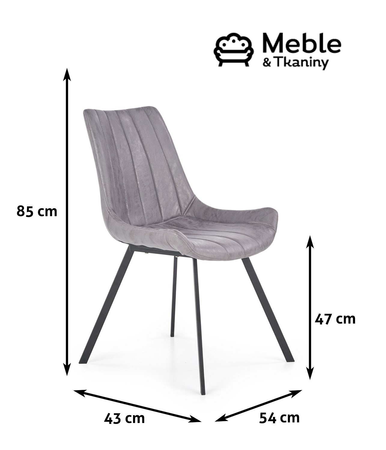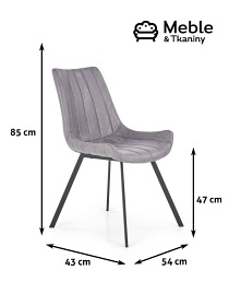 Podstawa przedstawionego krzesła wykonana została z czarnej stali malowanej proszkowo, natomiast jego siedzisko stanowi ecoskóra kolorze popielatym. Każde z oferowanych w Meble&Tkaniny krzeseł stworzono z maksymalną precyzją, a ich wygląd odpowiada najnowocześniejszym w tej branży trendom. Użyte materiały cechują się nieprzeciętną wytrzymałością i trwałością, dzięki czemu krzesła te są meblami, które potrafią służyć przez naprawdę wiele lat.