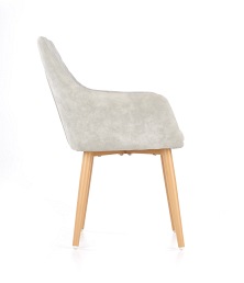 Podstawa przedstawionego krzesła wykonana została ze stali malowanej, natomiast jego siedzisko stanowi ecoskóra w czterech kolorach do wyboru: beżowym, popielatym, granatowym lub ciemny brąz. Każde z oferowanych w Meble&Tkaniny krzeseł stworzono z maksymalną precyzją, a ich wygląd odpowiada najnowocześniejszym w tej branży trendom. Użyte materiały cechują się nieprzeciętną wytrzymałością i trwałością, dzięki czemu krzesła te są meblami, które potrafią służyć przez naprawdę wiele lat.