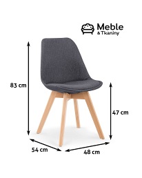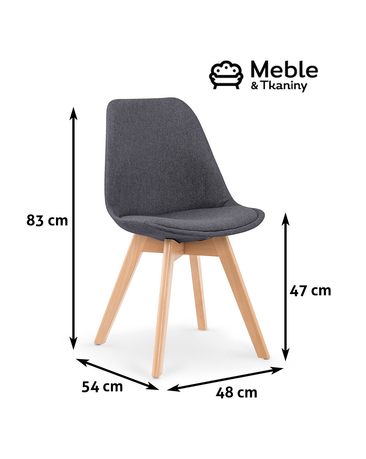 Podstawa przedstawionego krzesła wykonana została z bukowego drewna litego, natomiast jego siedzisko stanowi tkanina w czterech kolorach do wyboru: jasny popiel, ciemny popiel, ciemny zielony lub ciemny niebieski. Każde z oferowanych w Meble&Tkaniny krzeseł stworzono z maksymalną precyzją, a ich wygląd odpowiada najnowocześniejszym w tej branży trendom. Użyte materiały cechują się nieprzeciętną wytrzymałością i trwałością, dzięki czemu krzesła te są meblami, które potrafią służyć przez naprawdę wiele lat.