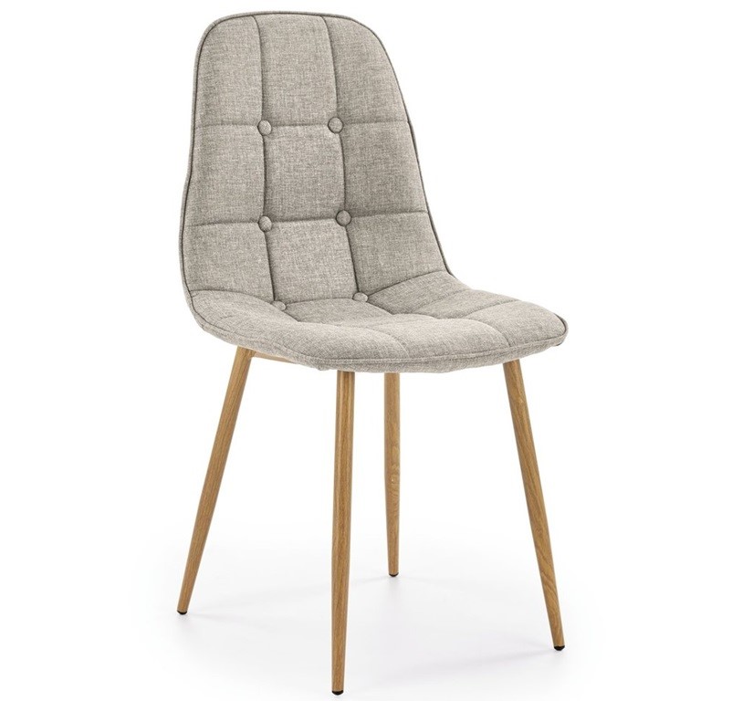Krzesło K316 to połączenie tradycyjnego stylu z nowoczesnym designem. Jest to mebel, który doskonale sprawdzi się zarówno w klasycznych, jak i współczesnych wnętrzach. Tapicerka nadaje krzesłu subtelny i elegancki wygląd, a jednocześnie jest praktyczna i łatwa w utrzymaniu czystości. Solidna konstrukcja oparta na metalowym stelażu malowanym proszkowo gwarantuje stabilność i trwałość, a nogi inspirowane drewnem dębu w kolorze miodowym dodają ciepła i naturalnego uroku.