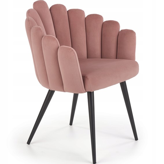 W ofercie naszego sklepu internetowego Meble & Tkaniny znajduje się krzesło tapicerowane w kolorze różowym, które wykonane zostało z najwyższą starannością i dbałością o estetykę. Stelaż i nogi wykonane są z metalu w kolorze czarnym, dba o wytrzymałość i stabilność krzesła. Obicie z aksamitnego materiału dba o najwyższy komfort i wygodę domowników. Meble tapicerowane pasować będą do pomieszczeń, które urządzone są w stylu nowoczesnym i eleganckim. Krzesło pochodzi od producenta Halmar, dzięki czemu można mieć pewność, że jest to mebel stylowy i wytrzymały. Zadba o zadowolenie wszystkich, nawet najbardziej wymagających klientów.
