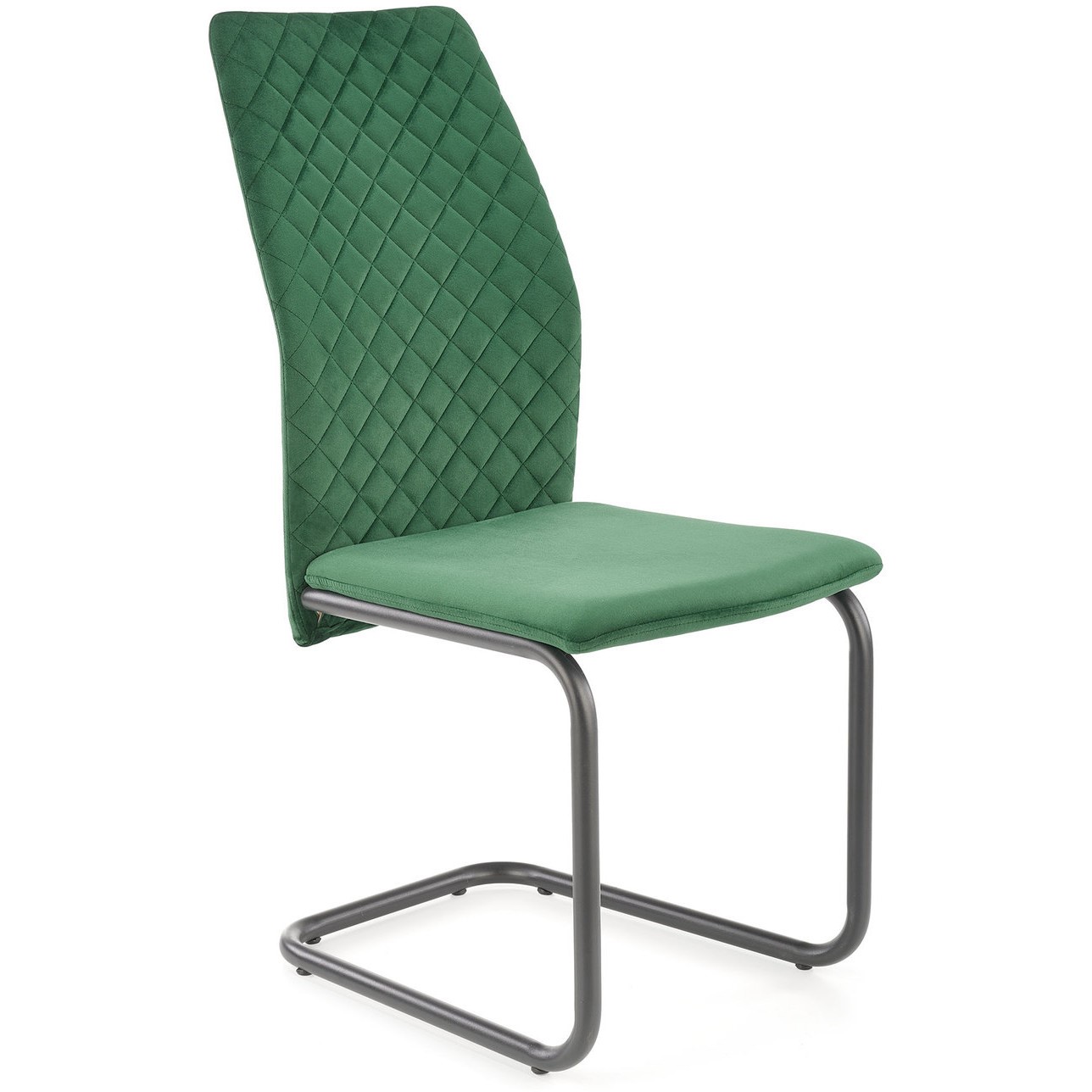 Zielone nowoczesne krzesło to designerski element wyposażenia, który łączy w sobie funkcjonalność, estetykę i innowacyjny wygląd. Siedzisko i oparcie są obite przyjemną w dotyku tkaniną Velvet w kolorze zielonym, nadając mu świeży i nowoczesny wygląd. Konstrukcja krzesła jest wykonana ze stali w kolorze czarnym. Ciekawe kształty sprawiają, że krzesło staje się nie tylko praktycznym meblem do siedzenia, ale również elementem dekoracyjnym.