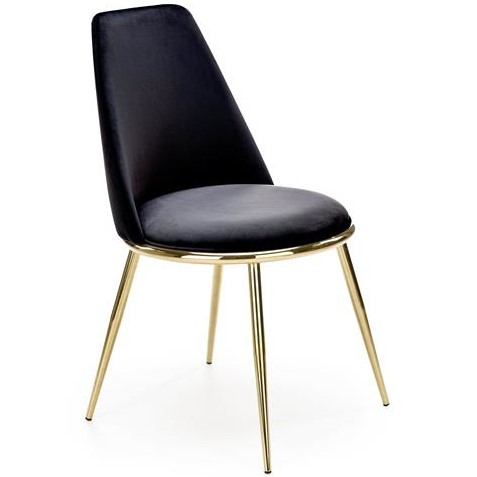 Krzesło tapicerowane K460 to krzesło do salonu i jadalni, które świetnie prezentuje się w stylu glamour. Krzesło tapicerowane jest aksamitną tkaniną. Aksamitna tkanina jest miękka i delikatna w dotyku oraz pięknie mieni się w słońcu. Nowoczesne krzesło ma chromowane złote nogi, które pięknie komponują się z aksamitną tapicerką krzesła. Krzesło tapicerowane K460 spełnia oczekiwania nawet najbardziej wymagających klientów.