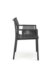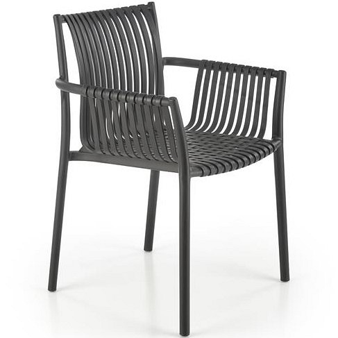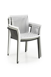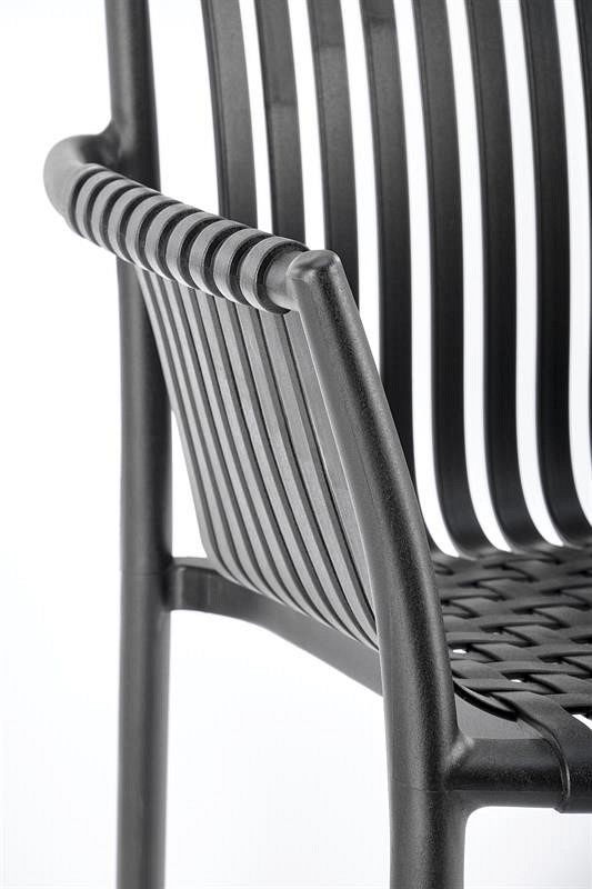 Krzesło K492 to eleganckie krzesło ogrodowe, które idealnie sprawdzi się na balkonie lub w ogrodzie. Wykonane w całości z wytrzymałego polipropylenu krzesło jest nie tylko trwałe, ale również odporne na warunki atmosferyczne. Siedzisko i oparcie krzesła wykonane są z pasków tworzywa sztucznego splecionych ze sobą, tworząc plecione siedzisko. Podłokietniki fotela zapewniają wygodne oparcie dla dłoni. Plastik łatwo się czyści, dzięki czemu dłużej zachowuje swój estetyczny wygląd. Dodatkowo materiał ten jest odporny na warunki zewnętrzne, dzięki czemu można bezpiecznie korzystać z krzesła na balkonie czy tarasie bez obaw o jego uszkodzenie.