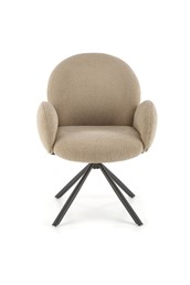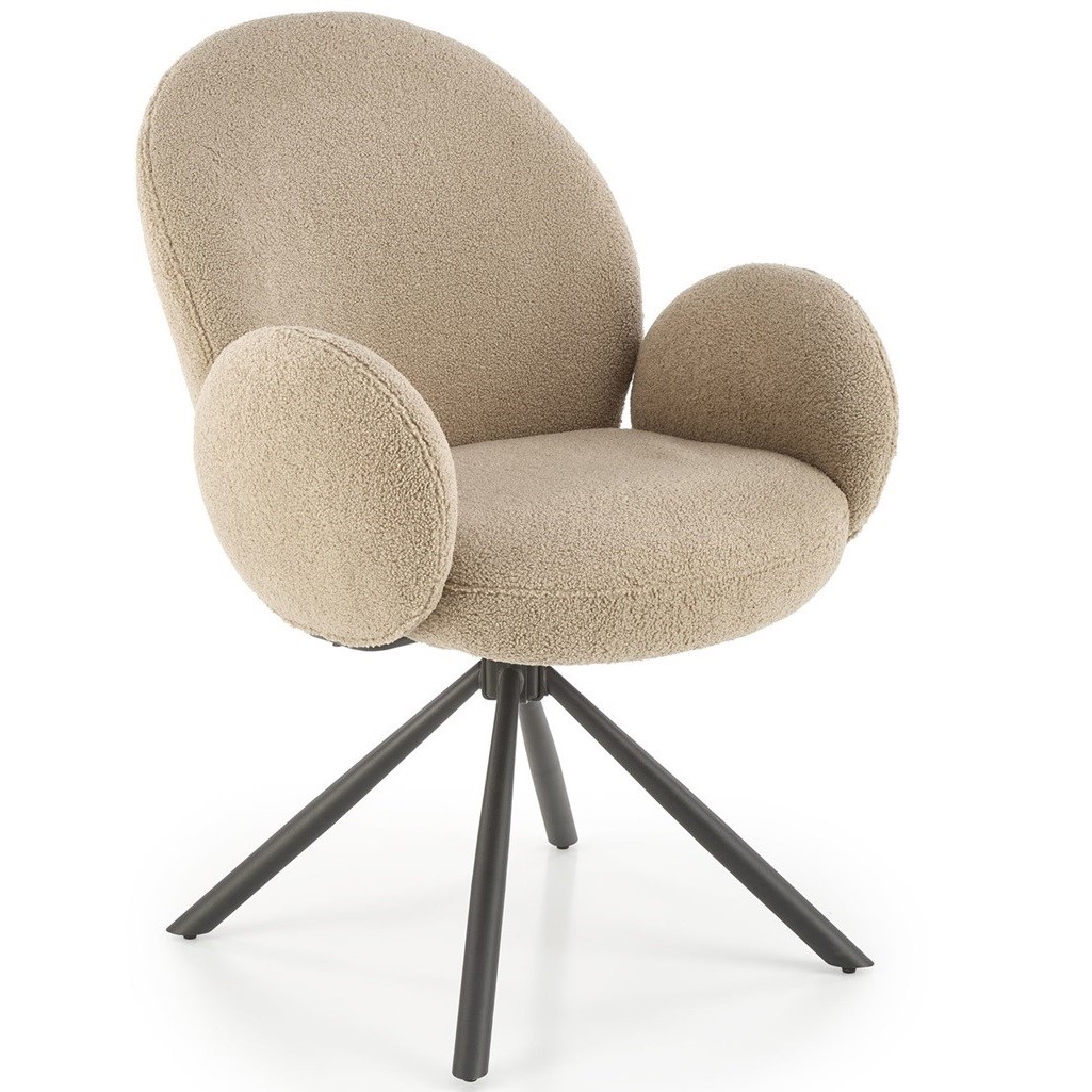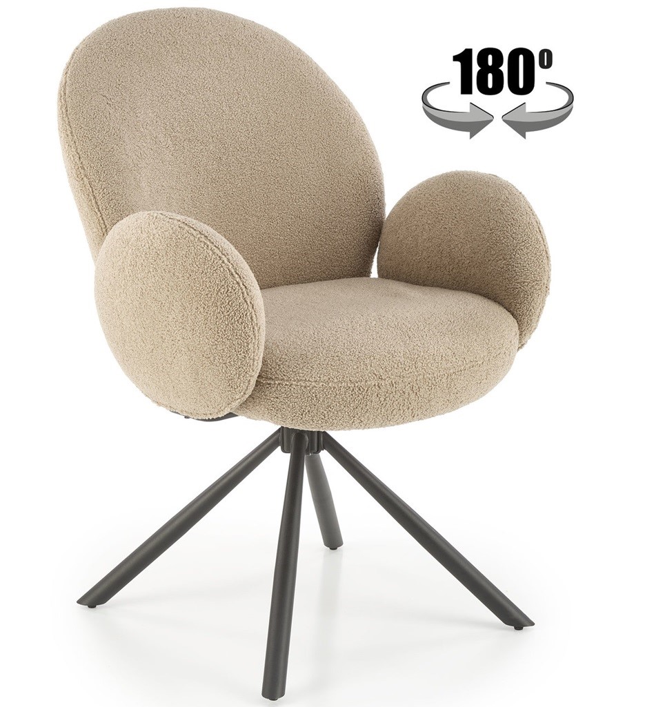 Krzesło K498 to eleganckie i nowoczesne siedzisko, które łączy w sobie komfort użytkowania z wyrafinowanym designem. Jego obrotowe siedzisko zapewnia wygodę i swobodę ruchów, a solidna konstrukcja z metalu malowanego proszkowo w kolorze czarnym gwarantuje stabilność i trwałość. Tapicerka wykonana z tkaniny bouclé dodaje krzesłu ciepły i przytulny charakter, jednocześnie będąc łatwą w utrzymaniu czystości.