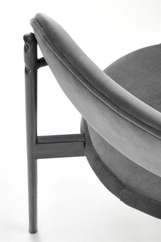 Krzesło K509 VELVET to mebel, który zapewnia nie tylko wygodne dopasowanie, ale także estetyczny wygląd i trwałość. Mocna stalowa konstrukcja krzesła ma okrągłe siedzisko i oparcie, oba pokryte aksamitną tkaniną. Aksamit subtelnie błyszczy w świetle słonecznym i subtelnie zmienia kolor w zależności od ułożenia włókien na tkaninie. Daje to wrażenie wyjątkowego i nietuzinkowego wyglądu krzesła. Nogi krzesła wykonane są ze stali malowanej proszkowo na kolor czarny, co zwiększa stabilność i trwałość.