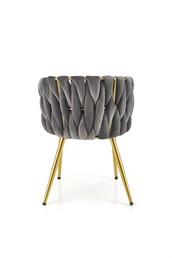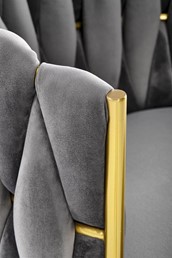 Krzesło K517 VELVET to elegancki mebel, który zwraca uwagę swoim niecodziennym designem. Oryginalne oparcie wykonane jest w ciekawy sposób, tkając tkaninę zapewniającą komfortowe oparcie dla opiekunki. Aksamitna tkanina nadaje krzesłu wyjątkową estetykę, a niskie nasłonecznienie wnosi do pomieszczenia luksus i elegancję. Dodatkowo tkanina ta charakteryzuje się dużą odpornością na ścieranie oraz przyczepnością, dzięki czemu można na dłużej zachować piękny wygląd mebli. Dodatkowym atutem jest łatwość utrzymania w czystości, co jest istotnym czynnikiem w przypadku mebli przeznaczonych do codziennego użytku. Stabilna metalowa podstawa krzesła malowana na złoto idealnie komponuje się z zielonym aksamitem, tworząc harmonijną całość. Krzesło K517 VELURO to funkcjonalny i estetyczny dodatek zarówno do salonu, jak i jadalni, nadający wnętrzu niepowtarzalny charakter.