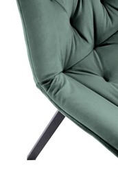 Krzesło K519 VELVET to wyjątkowy mebel, który z pewnością przyciągnie uwagę swoim oryginalnym designem. Siedzisko i oparcie fotela pokryte jest zieloną aksamitną tkaniną, która jest nie tylko przyjemnie miękka, ale również delikatnie połyskuje w promieniach słońca, nadając jej eleganckiego wyglądu. Nowoczesne krzesło jest w całości ozdobione wykładziną, która nadaje mu eleganckiego charakteru. Nogi krzesła wykonane są z czarnej stali proszkowej, co zapewnia stabilność i trwałość całej konstrukcji. Dodatkowo krzesło tapicerowane K519 VELVET posiada obrotową podstawę, która umożliwia swobodny obrót wokół własnej osi, co zwiększa komfort użytkowania. Krzesło doskonale sprawdzi się w mieszkaniach urządzonych w stylu loftowym, ale sprawdzi się również w nowoczesnych wnętrzach. Jej oryginalny wygląd i funkcjonalność sprawiają, że jest to nie tylko praktyczny mebel, ale także piękna aranżacja wnętrza.