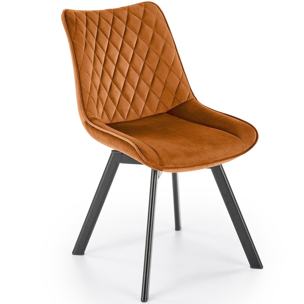 Krzesło K520 to połączenie nowoczesnego designu i funkcjonalności, idealne dla osób ceniących komfort i styl. Jego prosta, ale elegancka forma sprawia, że pasuje do wielu wnętrz, od klasycznych po industrialne. Stelaż wykonany z metalu malowanego proszkowo w kolorze czarnym zapewnia stabilność i trwałość, a siedzisko obrotowe o 360 stopni dodaje krzesłu praktyczności. Tapicerka wykonana z miękkiej tkaniny typu velvet, nie tylko pięknie się prezentuje, ale jest również przyjemna w dotyku i łatwa w utrzymaniu czystości. Krzesło K520, dzięki swojej pikowanej tapicerce na oparciu, oferuje wygodę i wsparcie podczas siedzenia, co czyni je idealnym wyborem do jadalni, salonu czy biura. Wymiary krzesła pozwalają na łatwe dopasowanie do różnych przestrzeni.