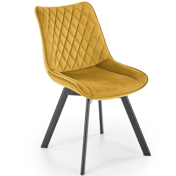 Krzesło K520 to połączenie nowoczesnego designu i funkcjonalności, idealne dla osób ceniących komfort i styl. Jego prosta, ale elegancka forma sprawia, że pasuje do wielu wnętrz, od klasycznych po industrialne. Stelaż wykonany z metalu malowanego proszkowo w kolorze czarnym zapewnia stabilność i trwałość, a siedzisko obrotowe o 360 stopni dodaje krzesłu praktyczności. Tapicerka wykonana z miękkiej tkaniny typu velvet, nie tylko pięknie się prezentuje, ale jest również przyjemna w dotyku i łatwa w utrzymaniu czystości. Krzesło K520, dzięki swojej pikowanej tapicerce na oparciu, oferuje wygodę i wsparcie podczas siedzenia, co czyni je idealnym wyborem do jadalni, salonu czy biura. Wymiary krzesła pozwalają na łatwe dopasowanie do różnych przestrzeni.