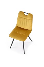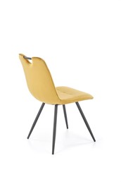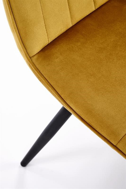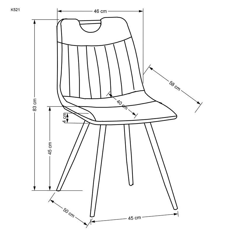 Krzesło K521 VELVET to mebel, który poza wygodnym siedziskiem oferuje również estetyczny wygląd i trwałość. Dzięki uchwytowi oparciowemu bez problemu przesuniemy fotel nie brudząc tapicerki. Oparcie posiada ozdobne pionowe szwy, które dodają meblom charakteru, natomiast pojedynczy szew na siedzisku podkreśla jego kształt i dzieli krzesło na dwie części. Krzesło pokryte jest miękką, wygodną tkaniną aksamitną w kolorze zielonym, która bardzo efektownie prezentuje się w różnych aranżacjach wnętrz. Dzięki temu krzesło z oparciem doskonale sprawdzi się zarówno w klasycznych, jak i nowoczesnych pomieszczeniach. Dodatkowo metalowe nogi malowane proszkowo na kolor czarny zapewniają wysoką trwałość i stabilność mebla, co pozwala na komfortowe użytkowanie przez długi czas. Krzesło K521 VELVET to doskonały wybór dla osób ceniących elegancki wygląd, wygodę i jakość mebli. Bez wątpienia sprawdzi się w salonie w domu, a także w biurze czy restauracji, doda charakteru i stylu każdemu pomieszczeniu.