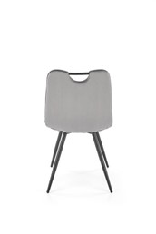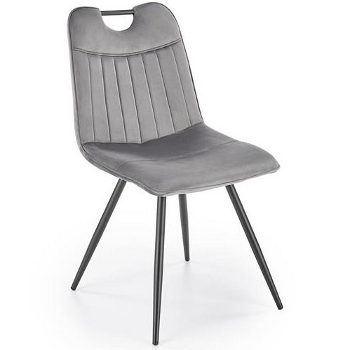 Krzesło K521 VELVET to mebel, który poza wygodnym siedziskiem oferuje również estetyczny wygląd i trwałość. Dzięki uchwytowi oparciowemu bez problemu przesuniemy fotel nie brudząc tapicerki. Oparcie posiada ozdobne pionowe szwy, które dodają meblom charakteru, natomiast pojedynczy szew na siedzisku podkreśla jego kształt i dzieli krzesło na dwie części. Krzesło pokryte jest miękką, wygodną tkaniną aksamitną w kolorze zielonym, która bardzo efektownie prezentuje się w różnych aranżacjach wnętrz. Dzięki temu krzesło z oparciem doskonale sprawdzi się zarówno w klasycznych, jak i nowoczesnych pomieszczeniach. Dodatkowo metalowe nogi malowane proszkowo na kolor czarny zapewniają wysoką trwałość i stabilność mebla, co pozwala na komfortowe użytkowanie przez długi czas. Krzesło K521 VELVET to doskonały wybór dla osób ceniących elegancki wygląd, wygodę i jakość mebli. Bez wątpienia sprawdzi się w salonie w domu, a także w biurze czy restauracji, doda charakteru i stylu każdemu pomieszczeniu.