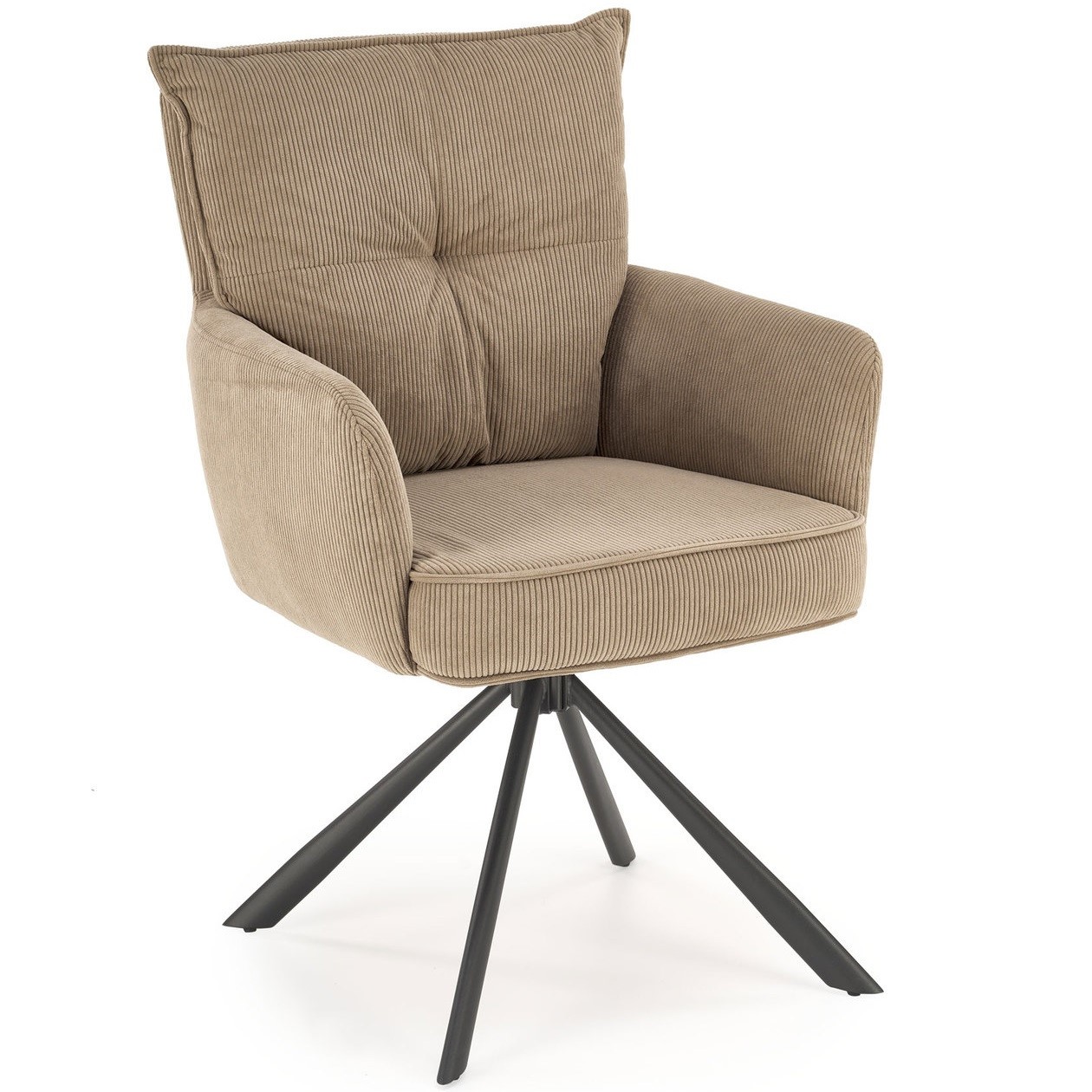Krzesło K528 jest obrotowe, z funkcją obracania o 180 stopni, co zwiększa jego funkcjonalność, szczególnie w przestrzeniach, gdzie mobilność i elastyczność ustawienia są kluczowe. Wymiary krzesła czyni je idealnym do użytku zarówno przy stole jadalnym, jak i biurku.