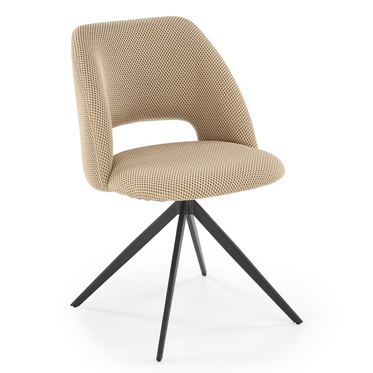 Nowoczesne krzesło, które doskonale łączy styl z funkcjonalnością, stanowiąc elegancki dodatek do każdego nowoczesnego wnętrza. Jego solidny stelaż wykonany z metalu w głębokim, matowym czarnym kolorze nie tylko zapewnia stabilność, ale także nadaje krzesłu wyrazistego charakteru. Siedzisko i oparcie krzesła zostały starannie obite beżową tkaniną membranową, co nie tylko nadaje mu lekkości, ale także zapewnia wyjątkowy komfort użytkowania. Tkanina membranowa jest przyjemna w dotyku, elastyczna i przewiewna, co sprawia, że krzesło jest doskonałym wyborem na długotrwałe siedzenie. Beżowy kolor tkaniny dodaje meblowi subtelnego, neutralnego charakteru, co pozwala na łatwe dopasowanie do różnych aranżacji wnętrz. Innowacyjną funkcją tego krzesła jest jego zdolność do obracania, co sprawia, że jest wszechstronne i dostosowane do różnych przestrzeni, takich jak biuro, gabinet czy salon.