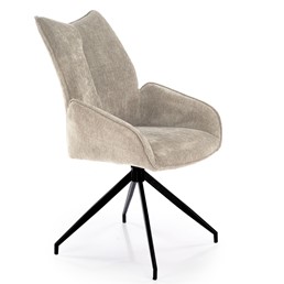 To nowoczesne krzesło to doskonałe połączenie elegancji, funkcjonalności i innowacyjnego designu. Obite delikatną tkaniną Odin, krzesło emanuje luksusem i wyrafinowaniem, jednocześnie zachowując minimalistyczny charakter. Tkanina Odin nadaje krzesłu ekskluzywnego wyglądu, jednocześnie zachowuje przyjemną w dotyku teksturę. Konstrukcja ze stali w głębokim odcieniu czerni podkreśla nowoczesny design, dodając krzesłu solidności i stylowego charakteru. Funkcja obrotu sprawia, że to krzesło nie tylko przyciąga wzrok swoim designem, ale także oferuje praktyczne rozwiązania. Obrotowa baza umożliwia wygodne dostosowanie pozycji siedzenia, co sprawia, że krzesło staje się wszechstronnym meblem, idealnym do użytku zarówno przy biurku, jak i jako elegancki element salonu czy gabinetu.