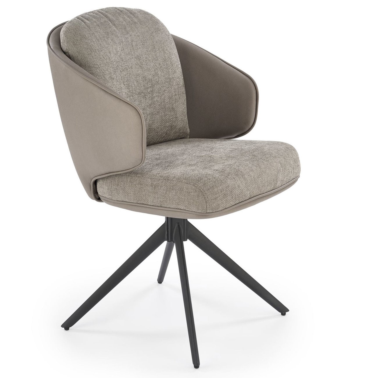 To nowoczesne krzesło to manifestacja stylu, elegancji i funkcjonalności, łącząc w sobie harmonię różnych materiałów. Jego siedzisko i oparcie obite są wysokiej jakości tkaniną oraz ekoskołą, tworząc wyjątkowy kontrast między naturalnym a sztucznym materiałem. Solidna konstrukcja ze stali w głębokim odcieniu czerni doskonale współgra z nowoczesnym designem krzesła. Nie tylko nadaje mu eleganckiego charakteru, ale również dodaje solidności i trwałości. Wyjątkowy kształt konstrukcji jest nie tylko estetyczny, ale również ergonomiczny, co zapewnia maksymalny komfort podczas użytkowania. Funkcja obrotu to praktyczne rozwiązanie, które sprawia, że to krzesło staje się wszechstronnym meblem. Idealne zarówno do biura, gdzie umożliwia swobodne przemieszczanie się, jak i do przestrzeni mieszkalnej, dodając dynamicznego charakteru.