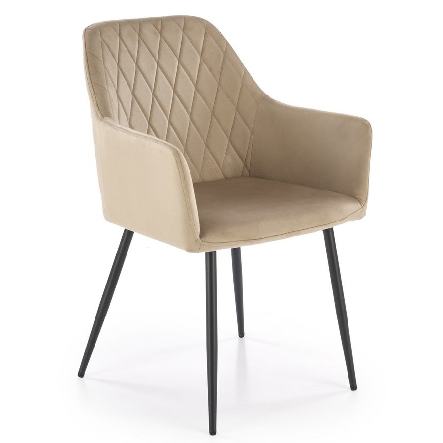 To nowoczesne krzesło emanuje subtelnością i elegancją, będąc równocześnie wyrazem nowoczesnego designu. Oparcie i siedzisko tego krzesła zostały wykończone delikatną tkaniną velvet, która zachwyca swoją miękkością i jedwabistym wyglądem. Tkanina ta nie tylko dodaje krzesłu wyjątkowego charakteru, ale również zapewnia użytkownikowi przyjemne doznania podczas siedzenia. Stelaż krzesła wykonany jest ze stalowej konstrukcji, co zapewnia nie tylko solidność, ale również nowoczesny wygląd. Delikatny wzorek na oparciu dodaje krzesłu subtelnego uroku i wyjątkowego charakteru. Jest to subtelny akcent, który podkreśla minimalistyczny design krzesła, jednocześnie nadaje mu niepowtarzalnego wyglądu.