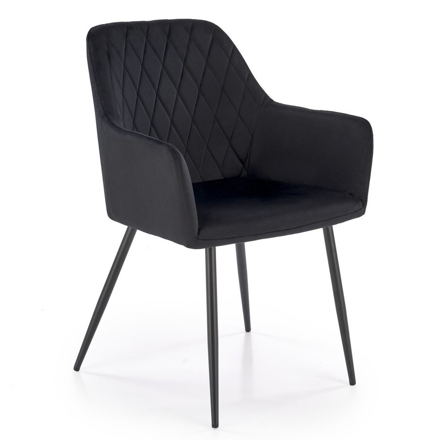 To nowoczesne krzesło emanuje subtelnością i elegancją, będąc równocześnie wyrazem nowoczesnego designu. Oparcie i siedzisko tego krzesła zostały wykończone delikatną tkaniną velvet, która zachwyca swoją miękkością i jedwabistym wyglądem. Tkanina ta nie tylko dodaje krzesłu wyjątkowego charakteru, ale również zapewnia użytkownikowi przyjemne doznania podczas siedzenia. Stelaż krzesła wykonany jest ze stalowej konstrukcji, co zapewnia nie tylko solidność, ale również nowoczesny wygląd. Delikatny wzorek na oparciu dodaje krzesłu subtelnego uroku i wyjątkowego charakteru. Jest to subtelny akcent, który podkreśla minimalistyczny design krzesła, jednocześnie nadaje mu niepowtarzalnego wyglądu.