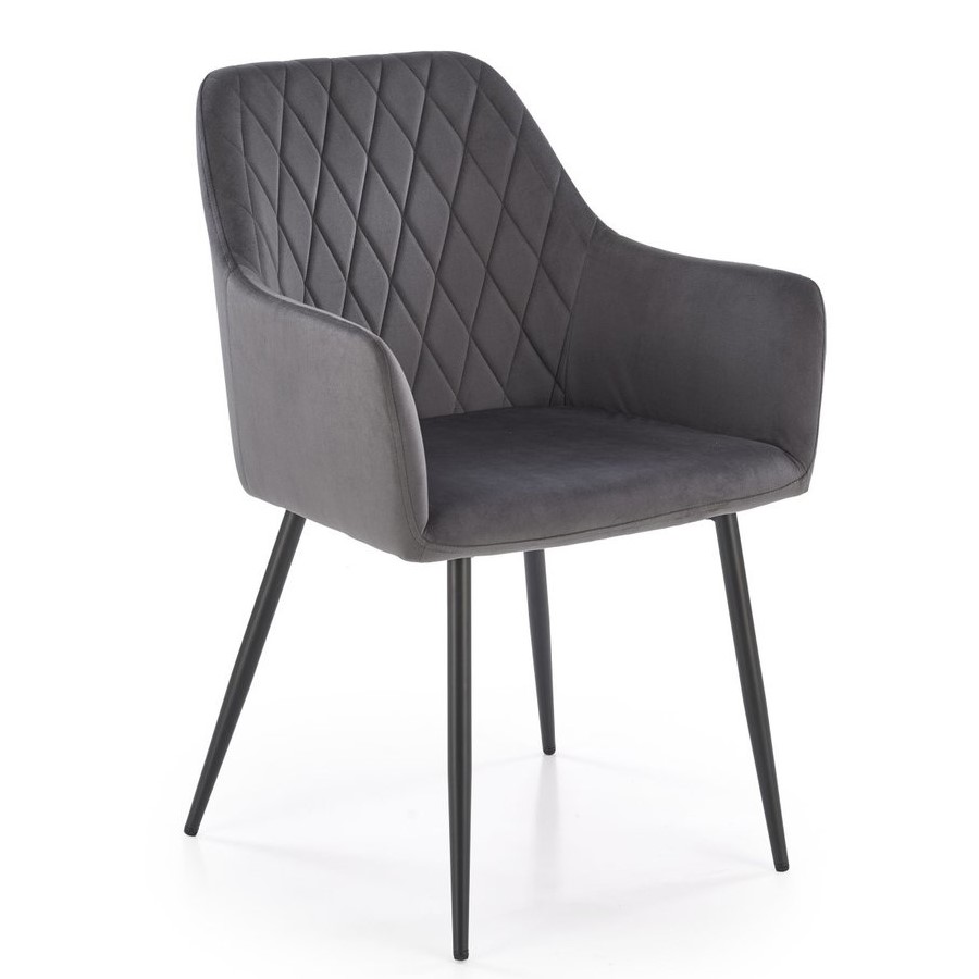 To nowoczesne krzesło emanuje subtelnością i elegancją, będąc równocześnie wyrazem nowoczesnego designu. Oparcie i siedzisko tego krzesła zostały wykończone delikatną tkaniną velvet, która zachwyca swoją miękkością i jedwabistym wyglądem. Tkanina ta nie tylko dodaje krzesłu wyjątkowego charakteru, ale również zapewnia użytkownikowi przyjemne doznania podczas siedzenia. Stelaż krzesła wykonany jest ze stalowej konstrukcji, co zapewnia nie tylko solidność, ale również nowoczesny wygląd. Delikatny wzorek na oparciu dodaje krzesłu subtelnego uroku i wyjątkowego charakteru. Jest to subtelny akcent, który podkreśla minimalistyczny design krzesła, jednocześnie nadaje mu niepowtarzalnego wyglądu.