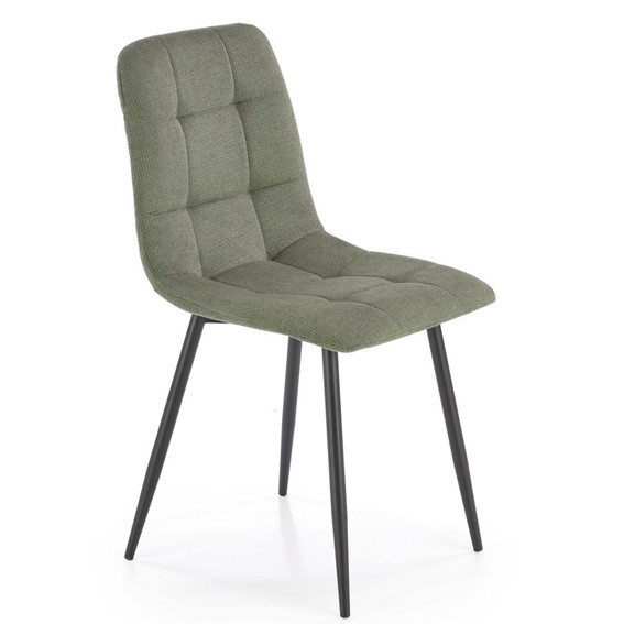 To nowoczesne krzesło stanowi harmonijną mieszankę funkcjonalności, stylu i wygody, idealną zarówno do jadalni, jak i salonu. Jego elegancki wygląd oraz solidna konstrukcja sprawiają, że wyróżnia się w każdym pomieszczeniu, nadając mu nowoczesny i przytulny charakter. Oparcie i siedzisko tego krzesła zostały starannie obite delikatną tkaniną, która nie tylko dodaje mu wyjątkowego uroku, ale również zapewnia użytkownikowi przyjemne doznania podczas siedzenia. Tkanina ta jest zarówno miękka, jak i trwała, co sprawia, że krzesło jest nie tylko estetyczne, ale również funkcjonalne. Stelaż wykonany jest z czarnej stali, co nadaje krzesłu nowoczesnego wyglądu i solidności. Konstrukcja ze stali gwarantuje trwałość i stabilność krzesła, dzięki czemu może być używane przez wiele lat bez utraty swojej elegancji i funkcjonalności.