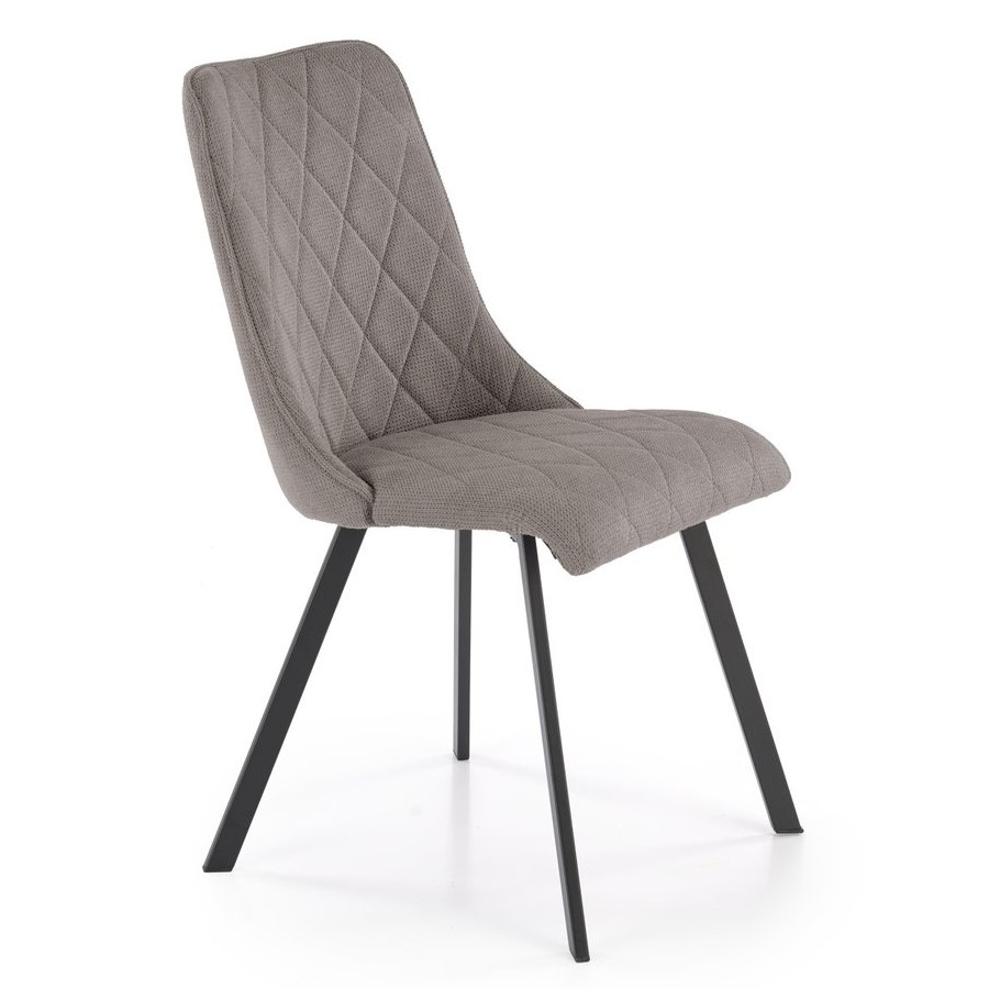 To nowoczesne krzesło stanowi harmonijną mieszankę funkcjonalności, stylu i wygody, idealną zarówno do jadalni, jak i salonu. Jego elegancki wygląd oraz solidna konstrukcja sprawiają, że wyróżnia się w każdym pomieszczeniu, nadając mu nowoczesny i przytulny charakter. Oparcie i siedzisko tego krzesła zostały starannie obite delikatną tkaniną, która nie tylko dodaje mu wyjątkowego uroku, ale również zapewnia użytkownikowi przyjemne doznania podczas siedzenia. Tkanina ta jest zarówno miękka, jak i trwała, co sprawia, że krzesło jest nie tylko estetyczne, ale również funkcjonalne. Stelaż wykonany jest z czarnej stali, co nadaje krzesłu nowoczesnego wyglądu i solidności. Konstrukcja ze stali gwarantuje trwałość i stabilność krzesła, dzięki czemu może być używane przez wiele lat bez utraty swojej elegancji i funkcjonalności.