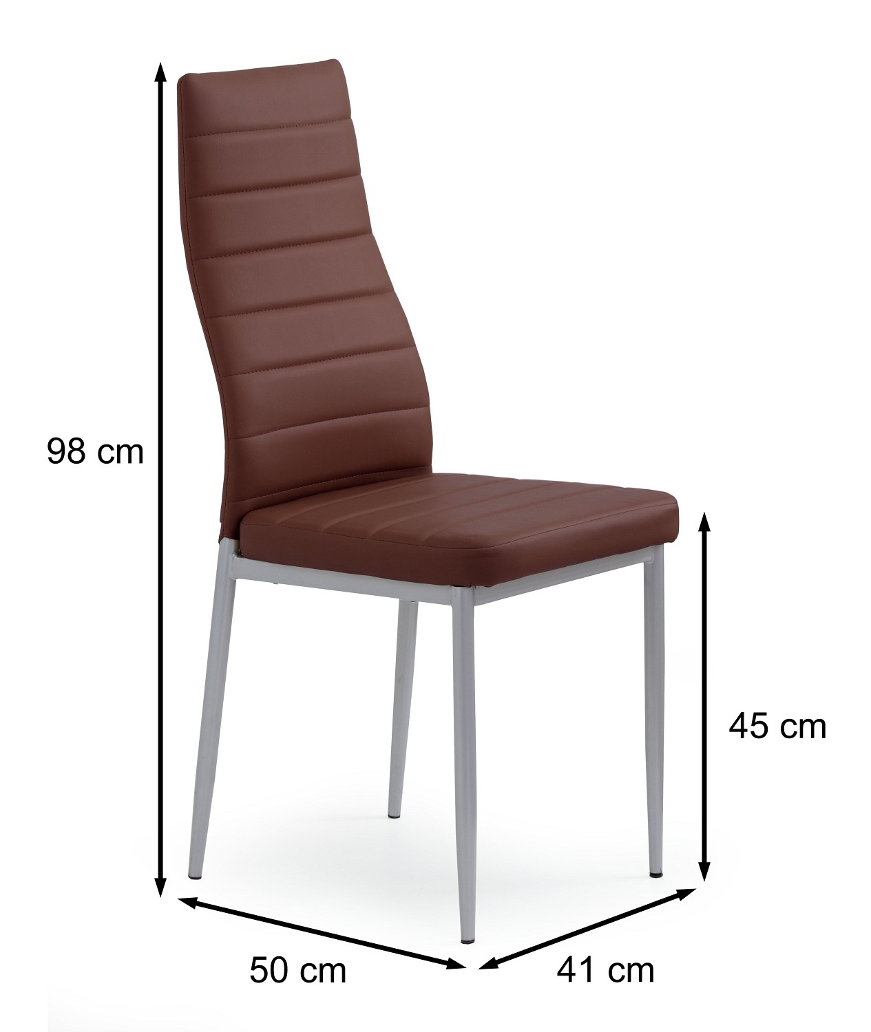 K70 to typowy przedstawiciel mebli salonowych. Stelaż wykonano ze stali w chromowanym wykończeniu. Miękkie siedzisko i oparcie obszyto ekoskóra w wielu różnych kolorach, które pozwolą na dopasowanie do niemal każdej przestrzeni. Elementem charakterystycznym są poprzeczne przeszycia na oparciu.