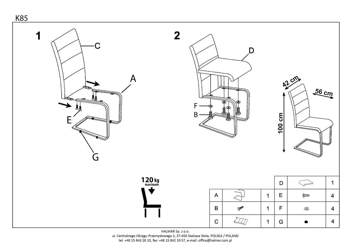 K85 to typowe krzesło do jadalni. Trwały stelaż wykonano ze stali w chromowanym wykończeniu. Proste siedzisko obszyto łatwą w czyszczeniu ekoskórą. Duża ilość kolorów pozwoli na dopasowanie do niemal każdej przestrzeni.