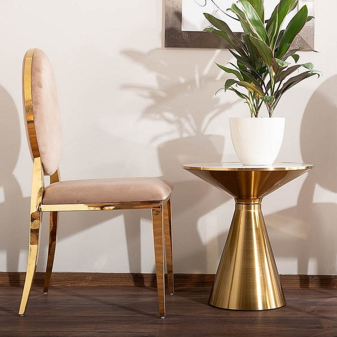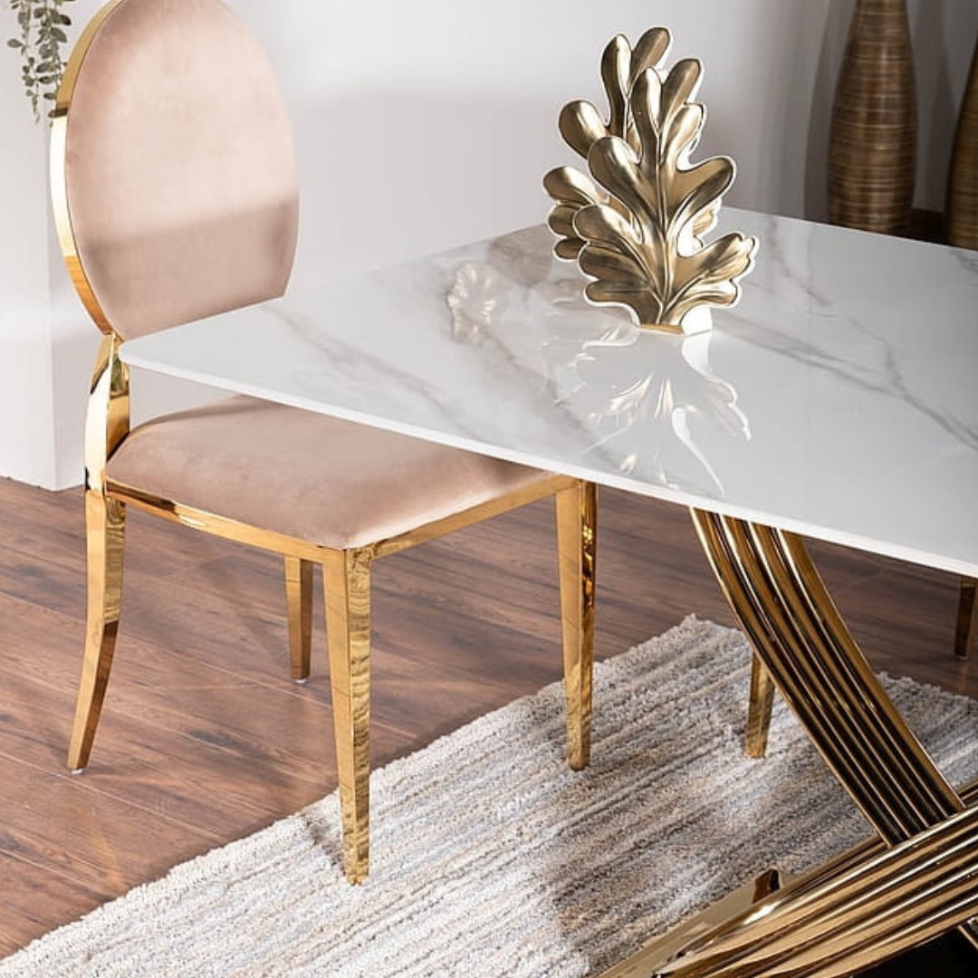 Krzesło King Velvet to połączenie luksusowej elegancji z wygodą użytkowania. Wykonane z wysokiej jakości tkaniny aksamitnej Bluvel w delikatnym odcieniu beżowego 28 oraz elementów ze stali nierdzewnej w złotym wykończeniu, to doskonały dodatek do każdego wnętrza. Ergonomiczny design i solidna konstrukcja zapewniają nie tylko wyjątkowy komfort, ale również trwałość na lata. Dzięki swojemu wyjątkowemu stylowi i funkcjonalności, Krzesło King Velvet stanie się centralnym punktem każdego pomieszczenia.