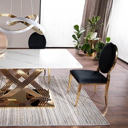Krzesło King Velvet to połączenie wyrafinowanego designu z komfortem użytkowania. Wykonane z najwyższej jakości materiałów, w tym luksusowej tkaniny aksamitnej Bluvel w eleganckim odcieniu czarnego 19 oraz elementów ze stali nierdzewnej w złotym kolorze, zapewnia nie tylko estetyczny wygląd, ale także trwałość na lata. Dzięki ergonomicznie zaprojektowanej konstrukcji i wygodnemu siedzisku krzesło gwarantuje wyjątkowy komfort nawet podczas długotrwałego użytkowania. Doskonałe połączenie stylu, elegancji i funkcjonalności, które sprawia, że Krzesło King Velvet staje się nieodzownym elementem każdego nowoczesnego wnętrza.