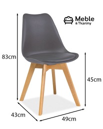 KRIS to klasyczne krzesło w stylu skandynawskim. Siedzisko wykonane jest z trwałego polipropylenu. Dodatkowo wyposażone jest w miękką poduszkę obszytą ekoskórą. Stelaż wykonany jest z drewna bukowego.