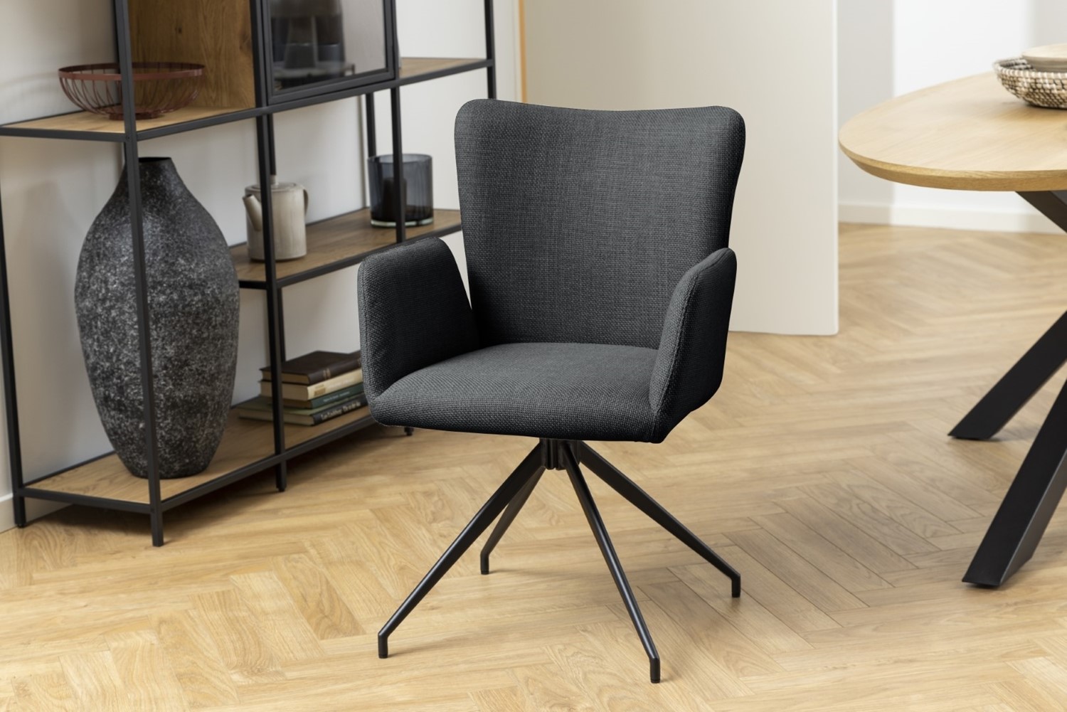 Krzesło Laura w kolorze szarym ciemnym z podłokietnikami jest eleganckim i stylowym meblem do każdego pomieszczenia. Dzięki solidnej konstrukcji i wygodnym podłokietnikom, zapewnia komfort podczas siedzenia. Doskonale sprawdzi się zarówno w salonie, jadalni, biurze czy gabinecie. Jego ponadczasowy design sprawi, że będzie pasował do wielu różnych aranżacji wnętrz. Jego klasyczny design i uniwersalny kolor pasują do różnych wnętrz, dodając im nuty stylu i elegancji. To idealne rozwiązanie dla osób ceniących sobie wygodę i funkcjonalność.